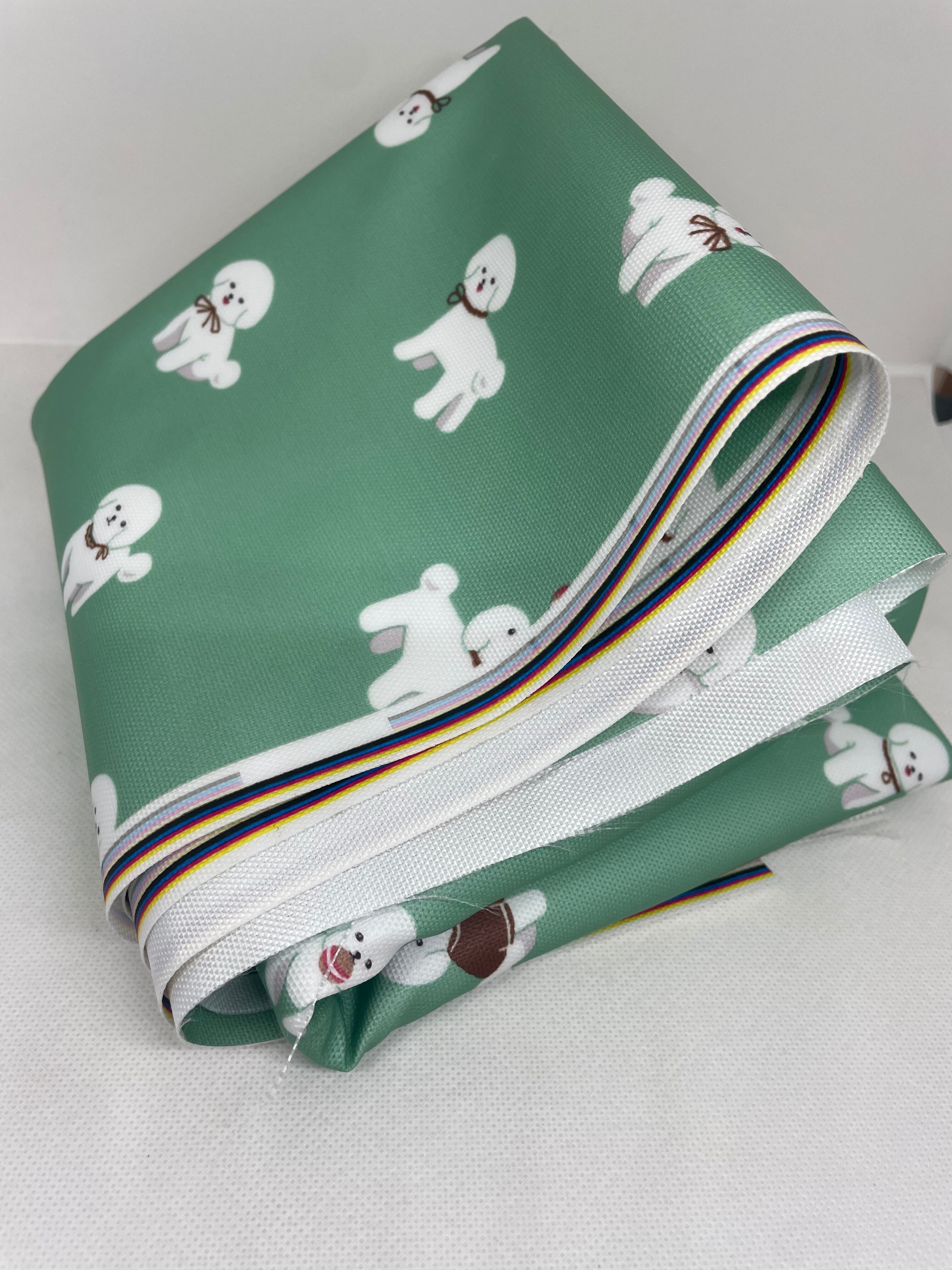 ビションフリーゼ柄 防水防汚プリント加工オックスフォード生地 ランチバッグ 保温ポーチ 洗面 化粧ポーチ