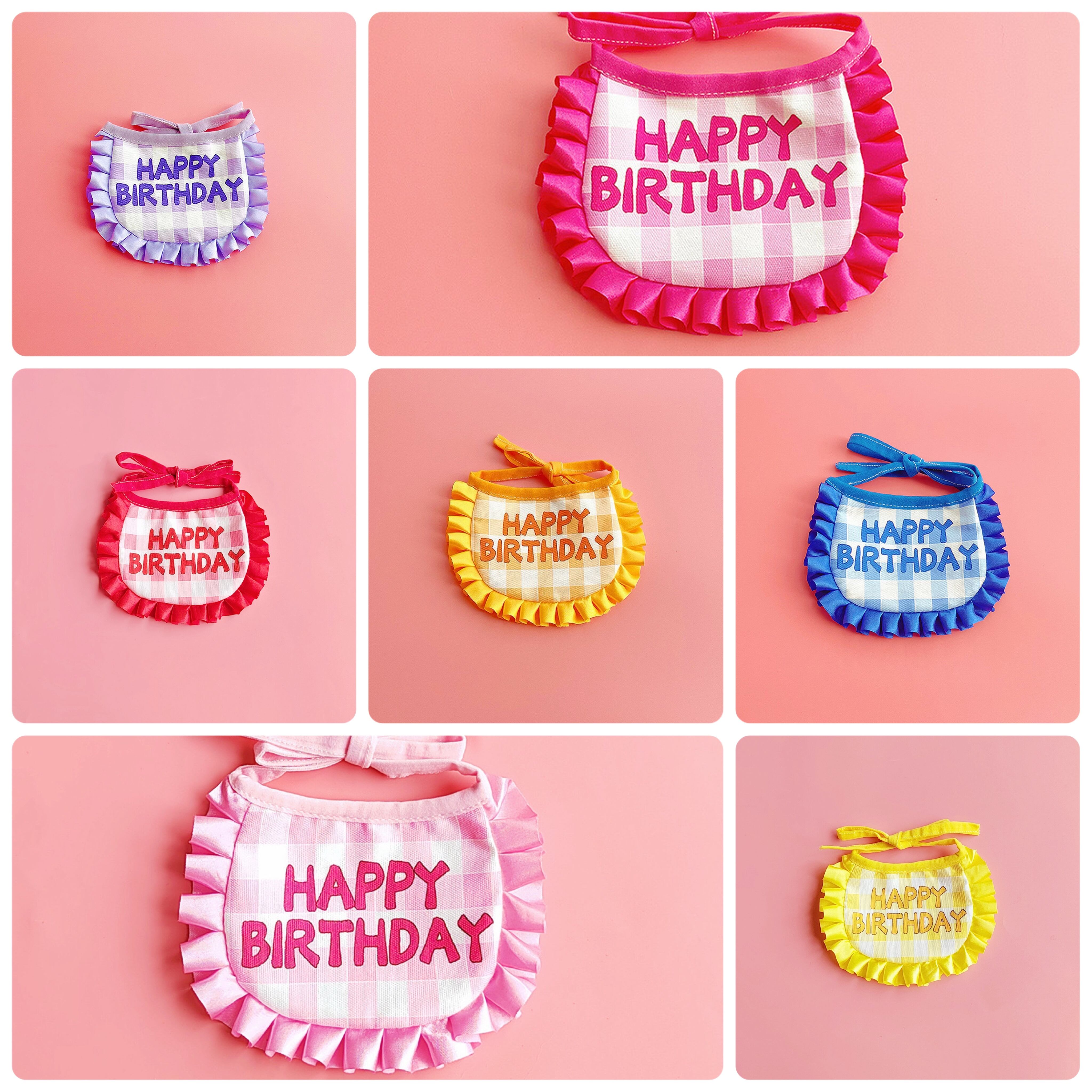 「HAPPY BIRTHDAY」の文字が入った、華やかでキュートなフリル付きスタイです。