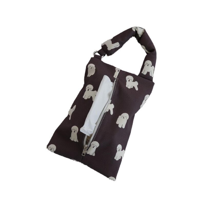 かわいいビションフリーゼ柄が目を引く、コンパクトなティッシュポーチです。
