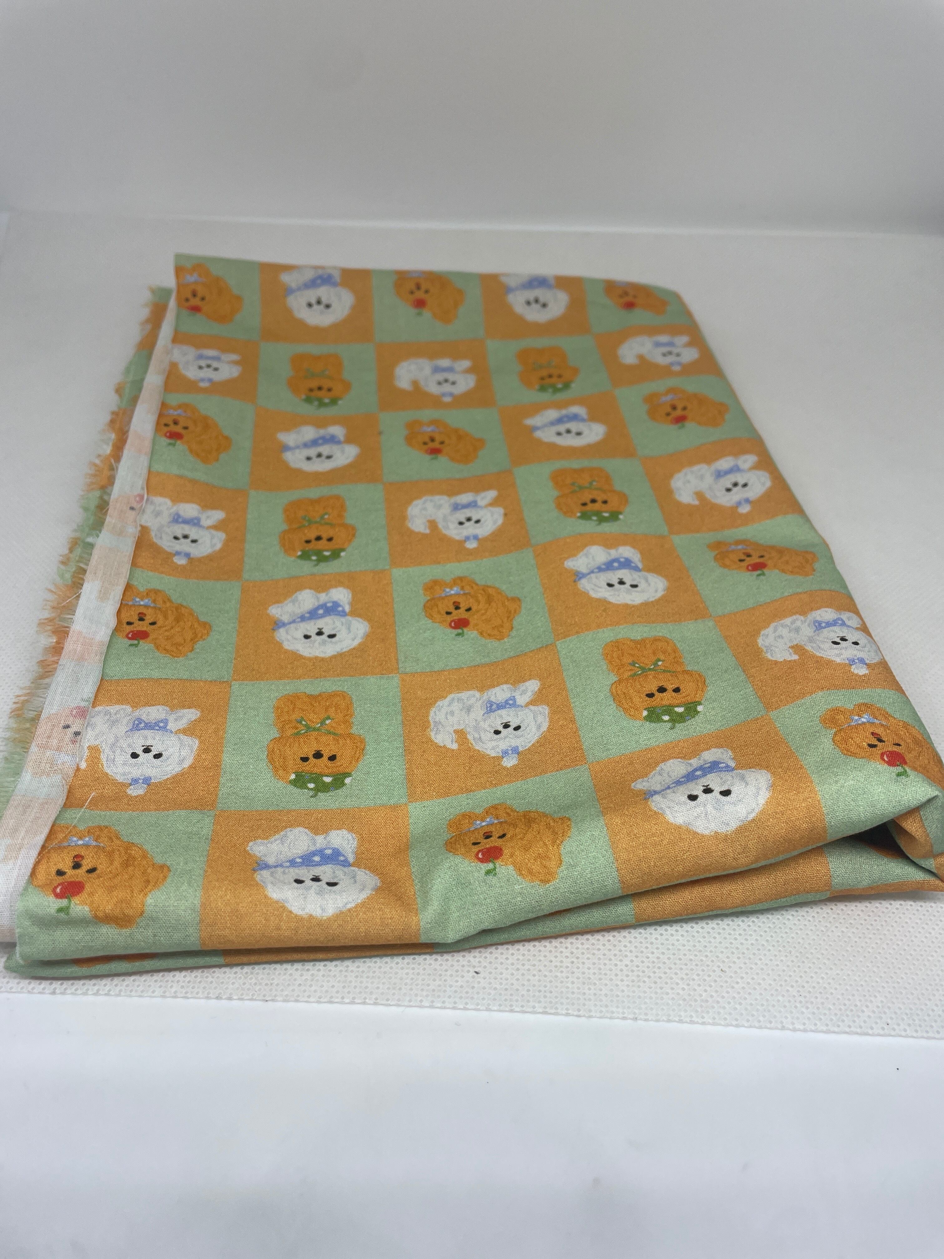 コットン デジタルプリント プードル ハンドメイド生地 衣類パジャマ生地 犬の柄 女の子用ワンピース スモック・洋服DIY用 生地