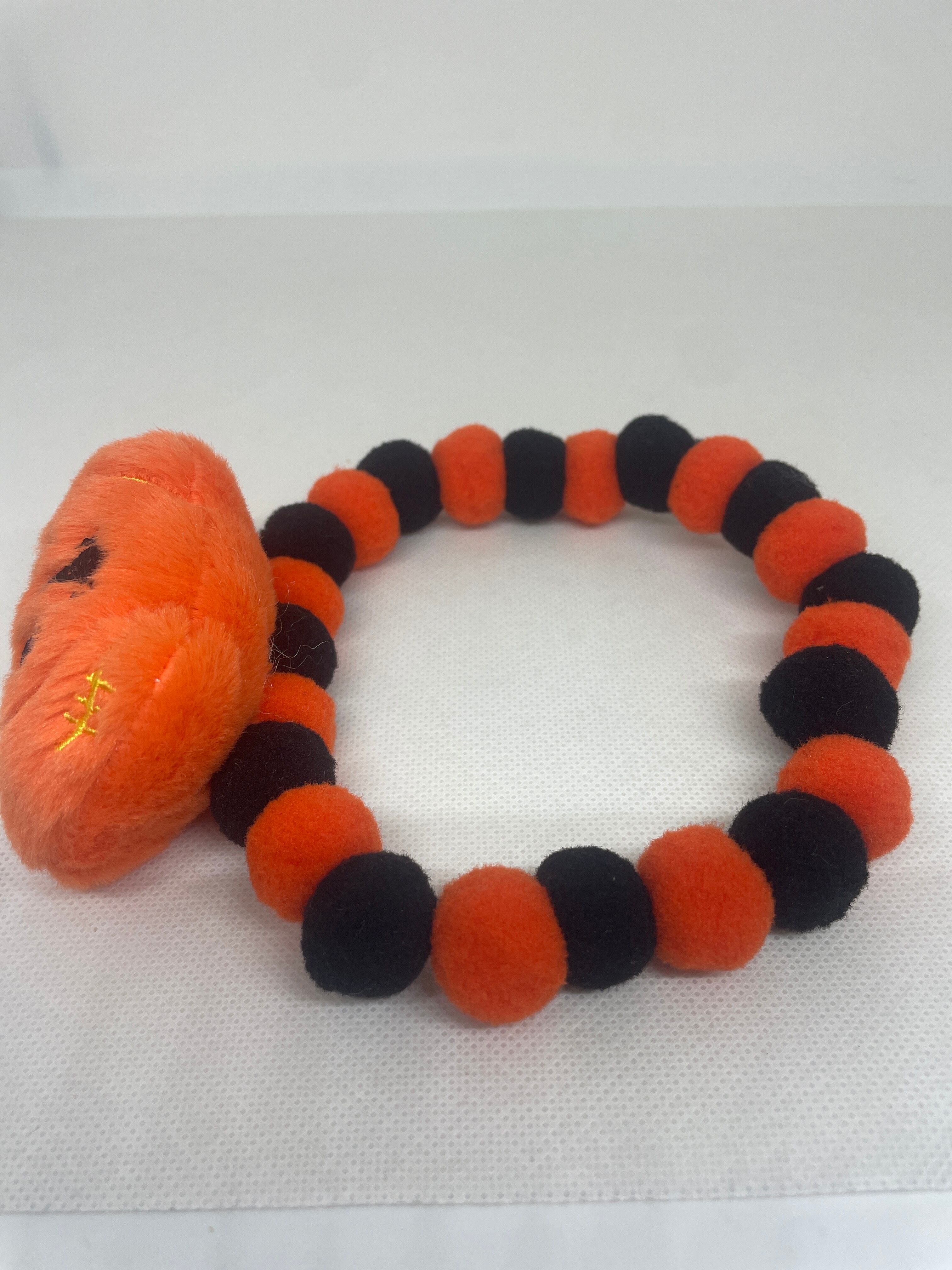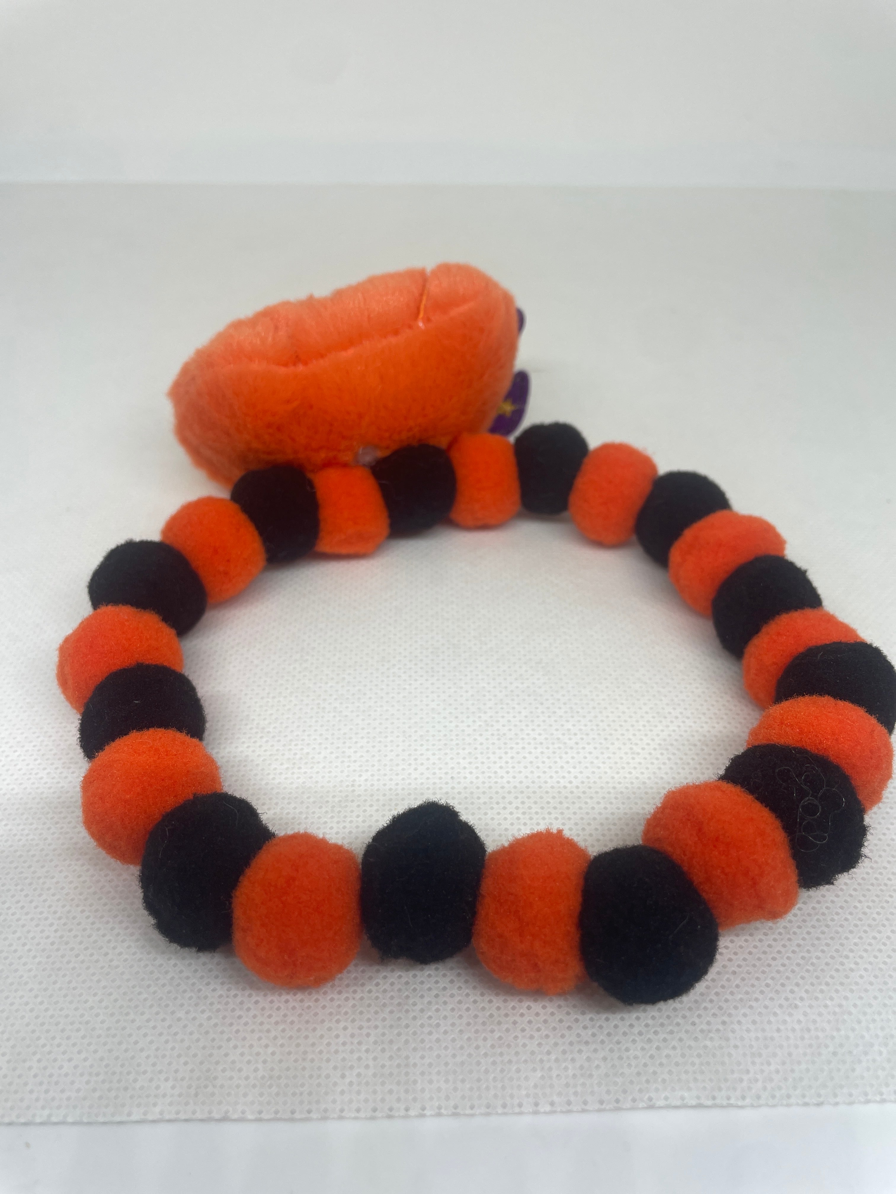 オレンジとブラックのふわふわボールが交互に並び、ポイントに魔女の帽子がついています。