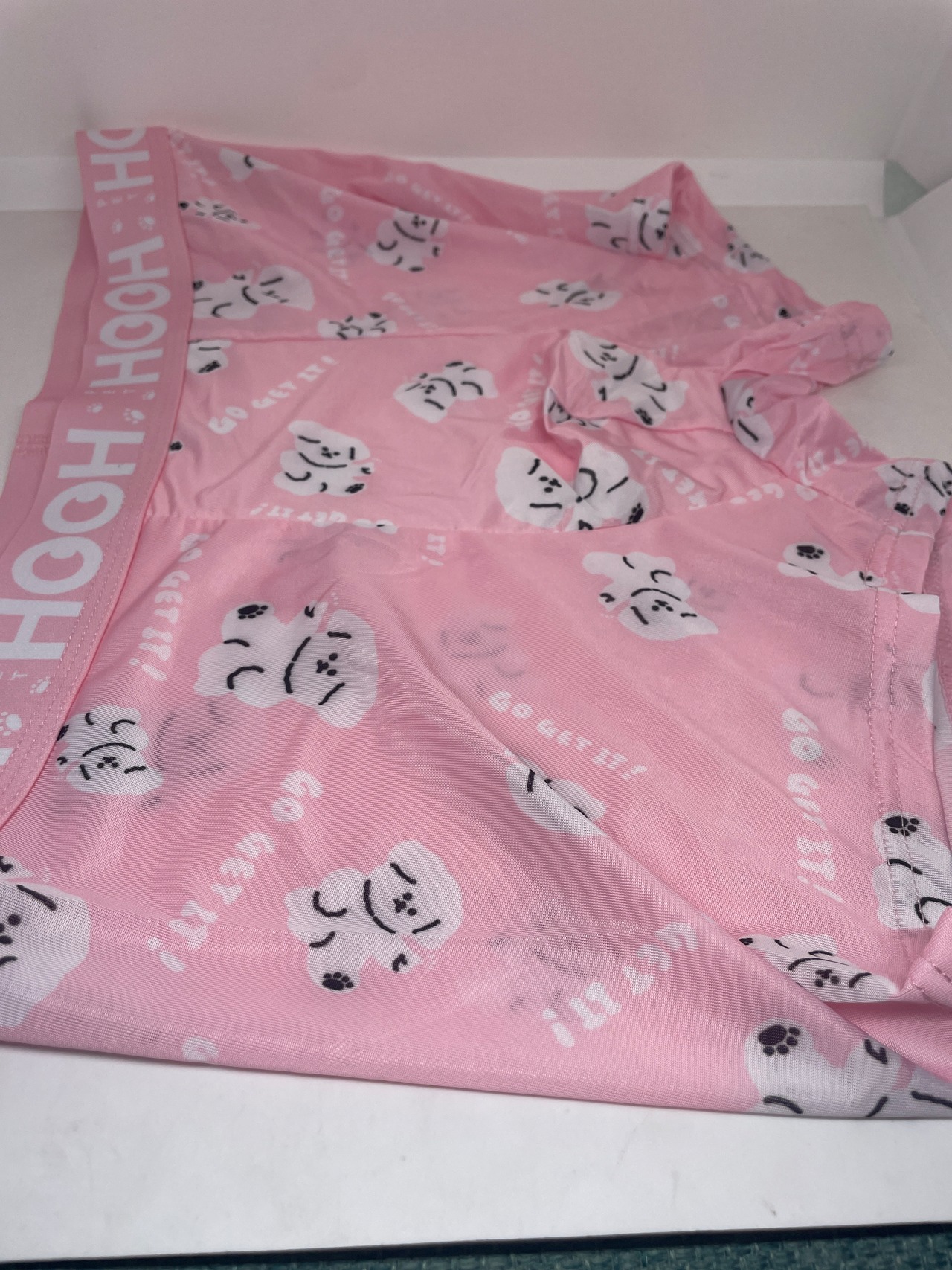 ビション柄、プードル柄が目を引くピンクのボクサーパンツです♪