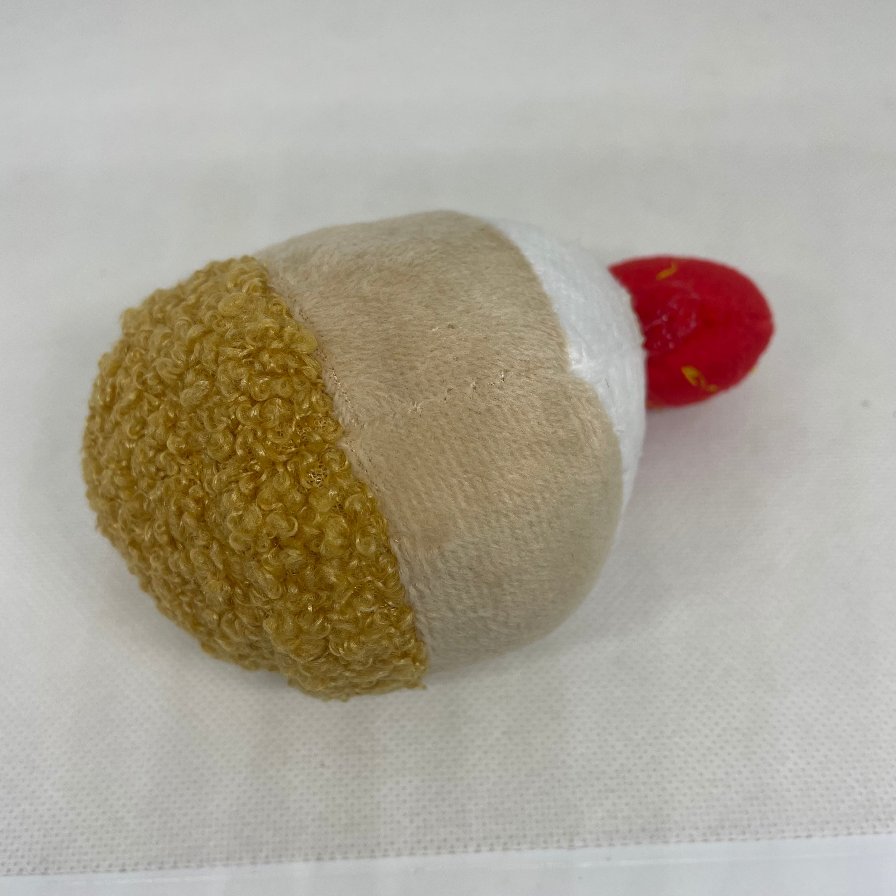 ワンちゃんが楽しく遊べる、ふわふわ素材の可愛いケーキ型おもちゃです。