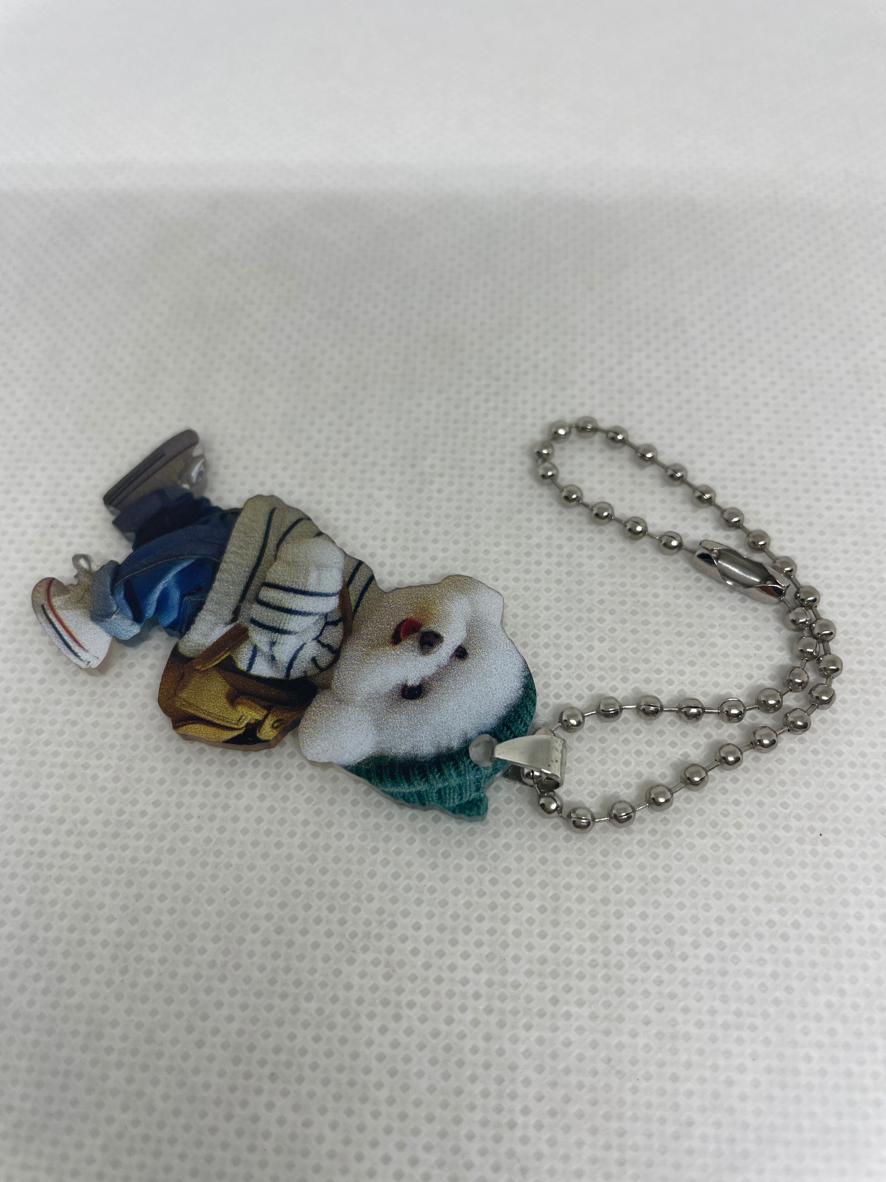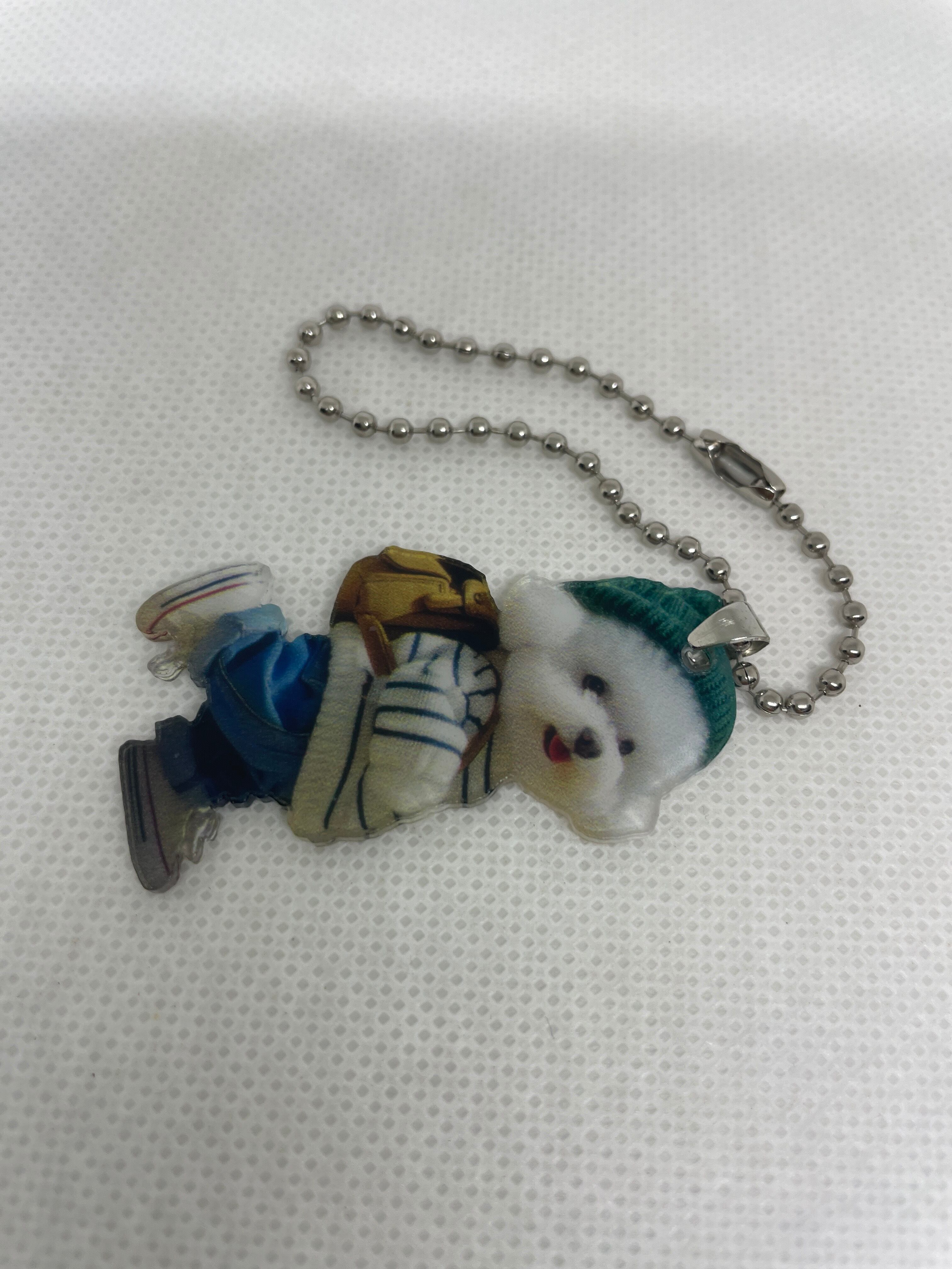 お洋服を着たビションフリーゼが可愛いアクリルキーホルダーです。