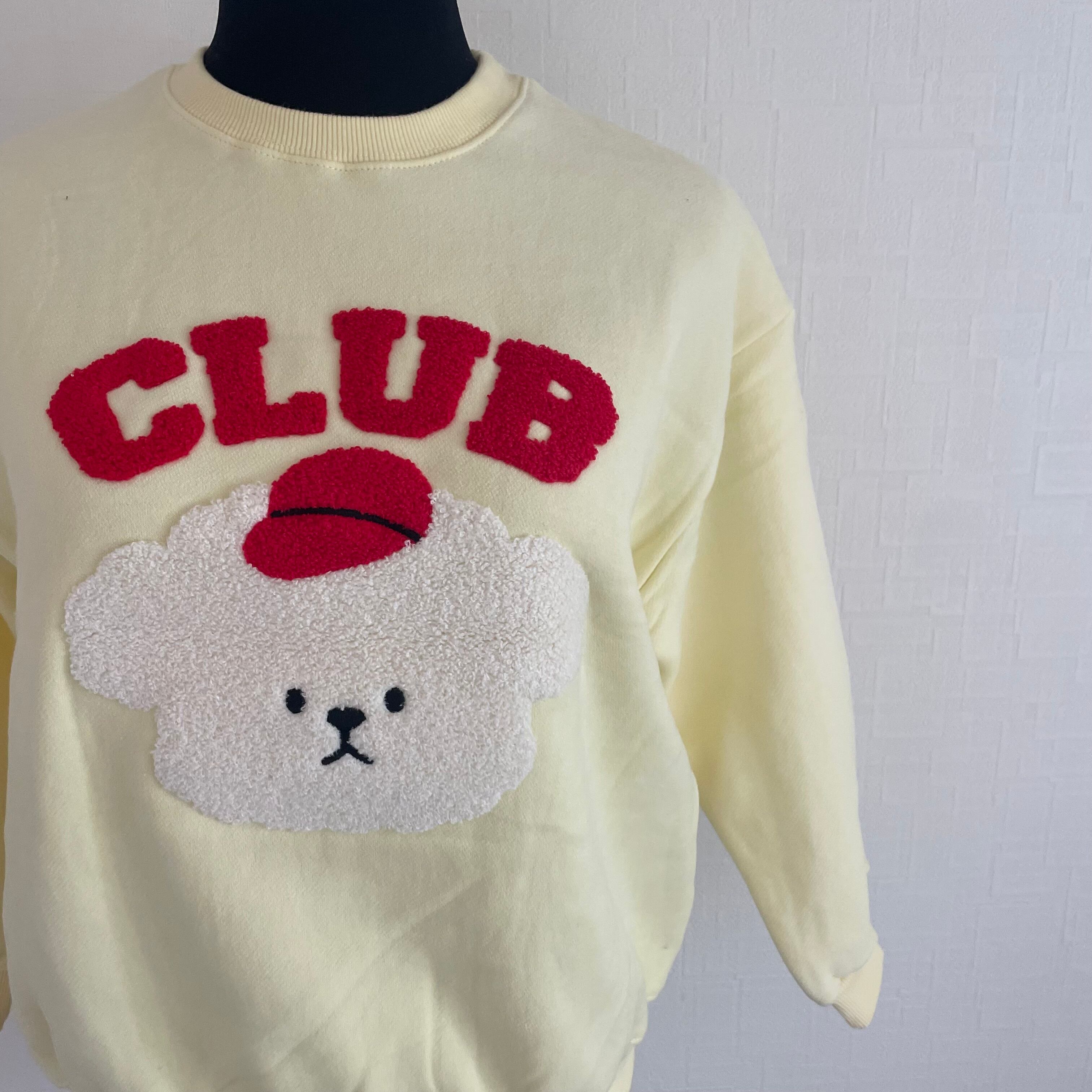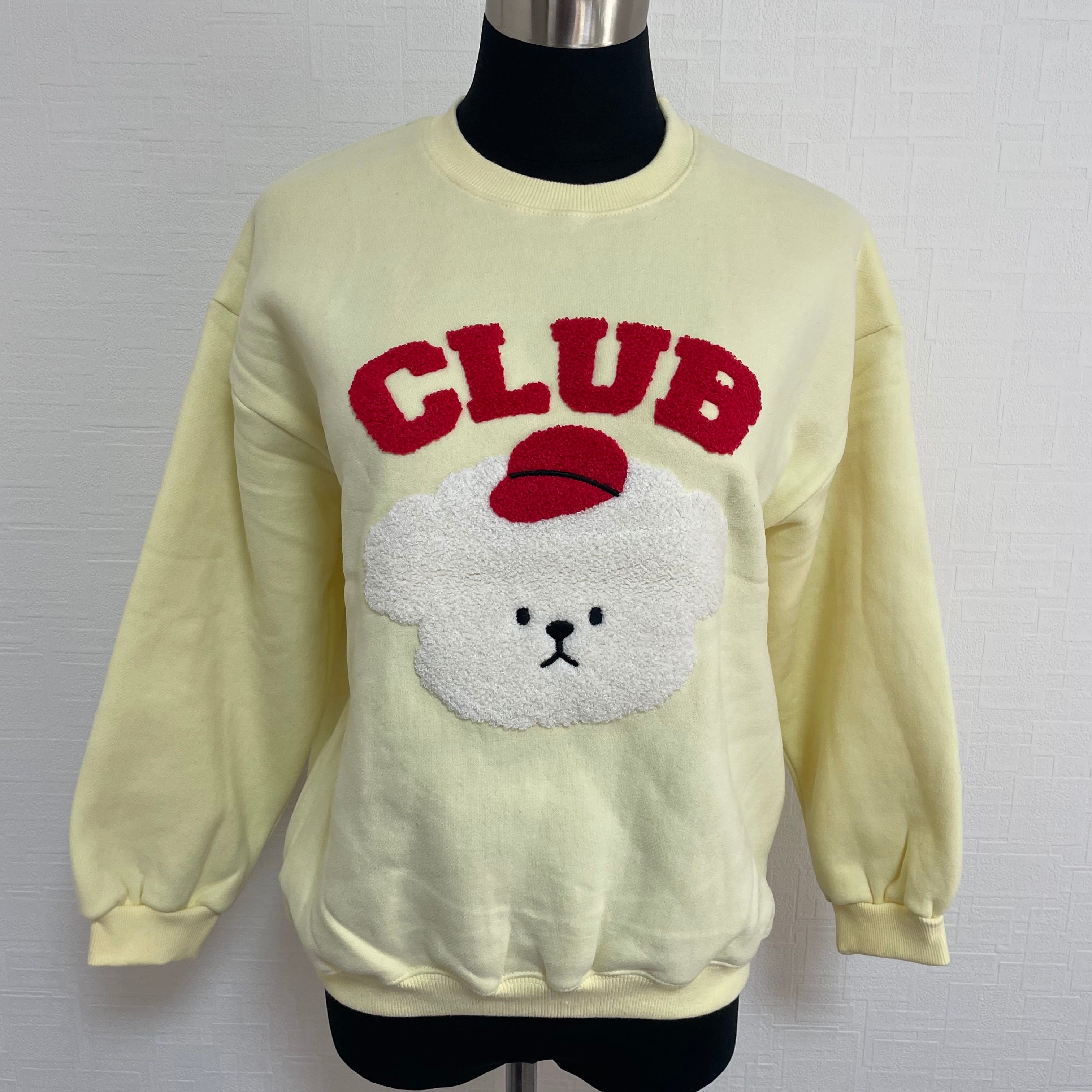 胸元に「CLUB」の大きなロゴと、モコモコとした立体的なお顔がデザインされたキュートなトレーナーです。