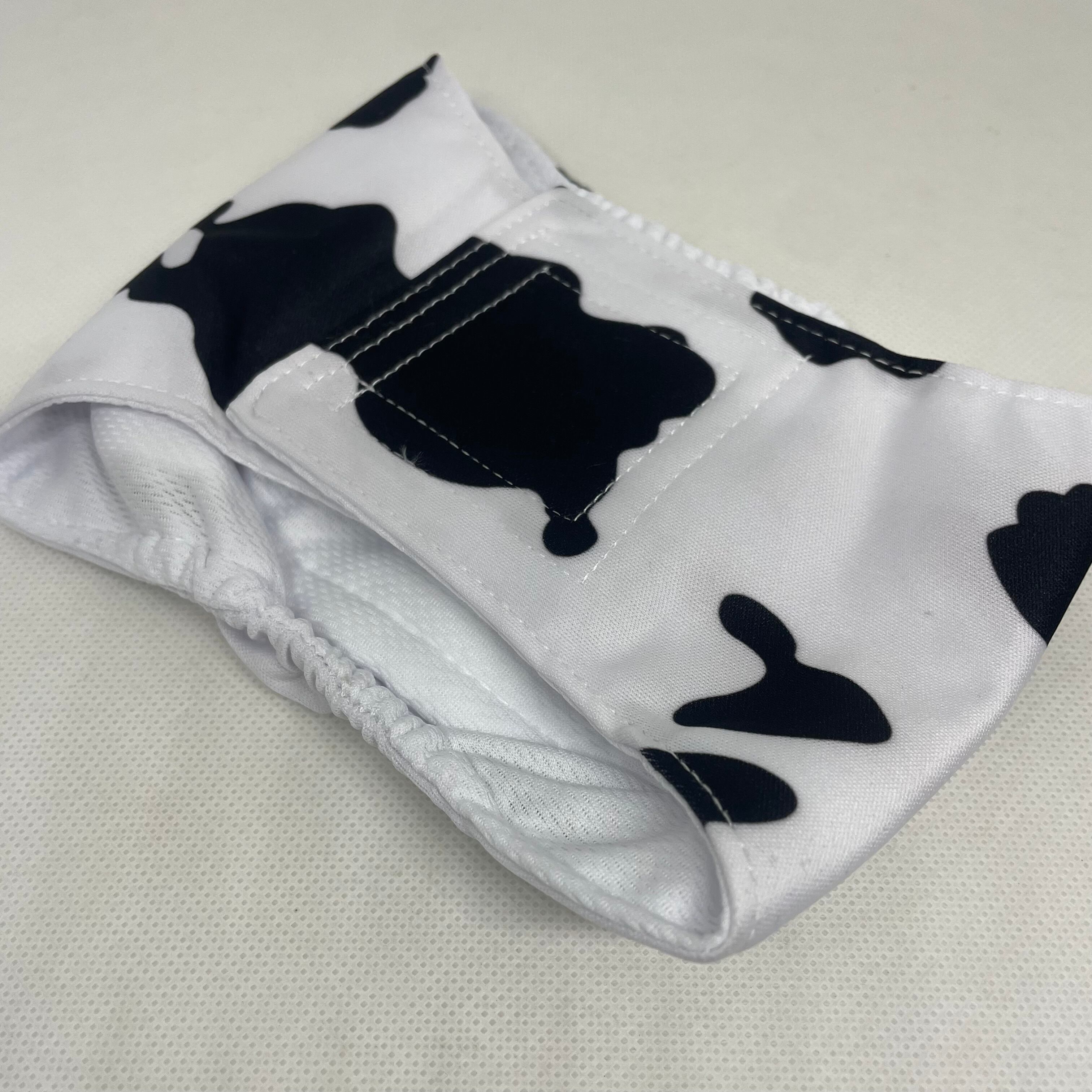 牛柄デザインが可愛い、ワンちゃん用のマナーベルトカバーです。