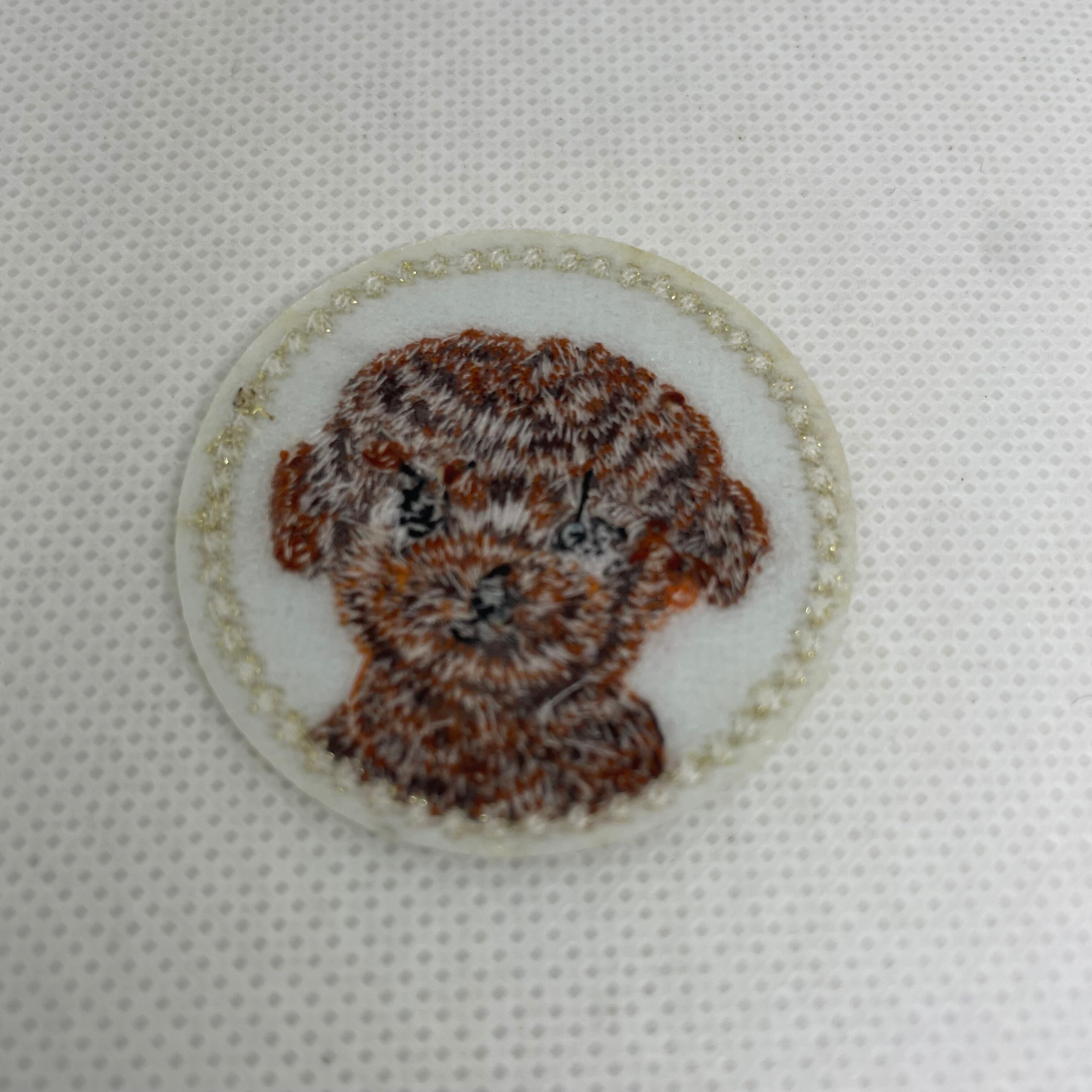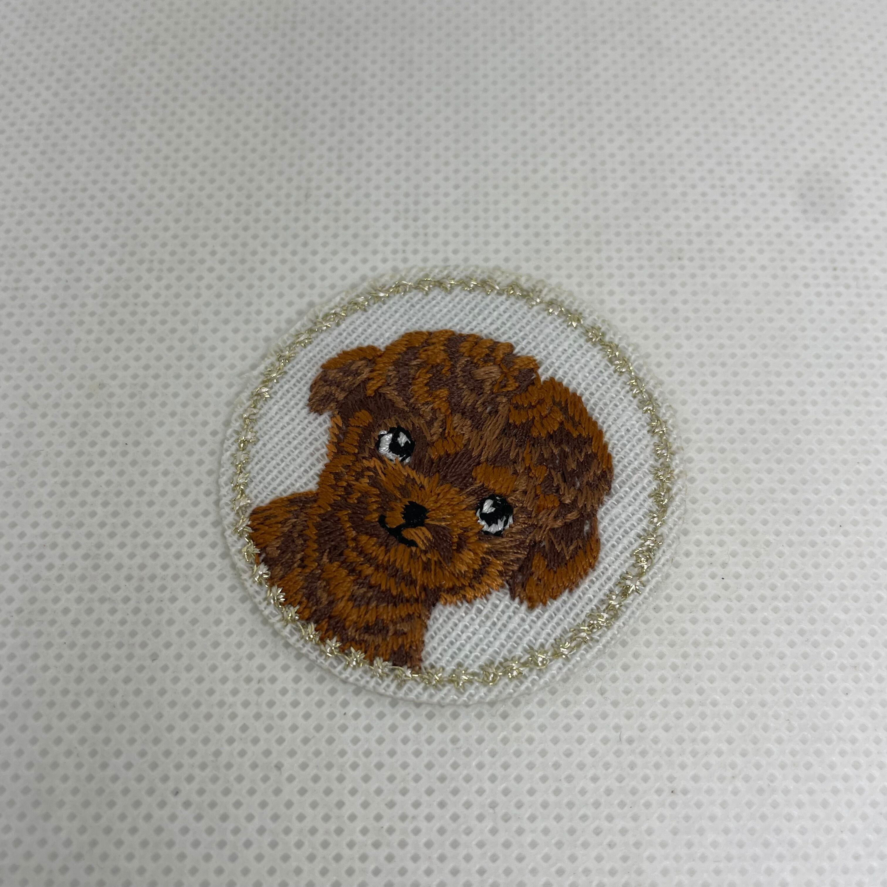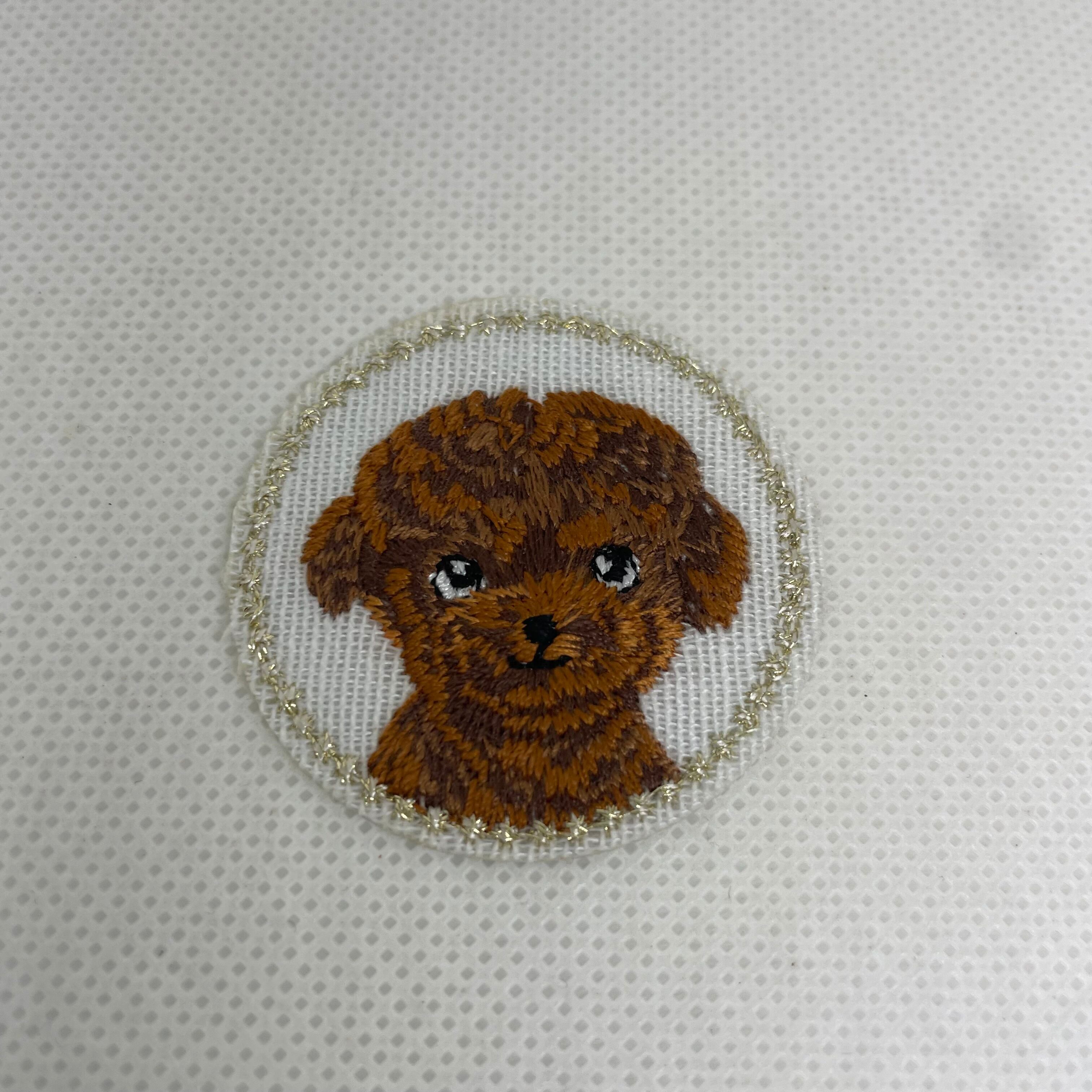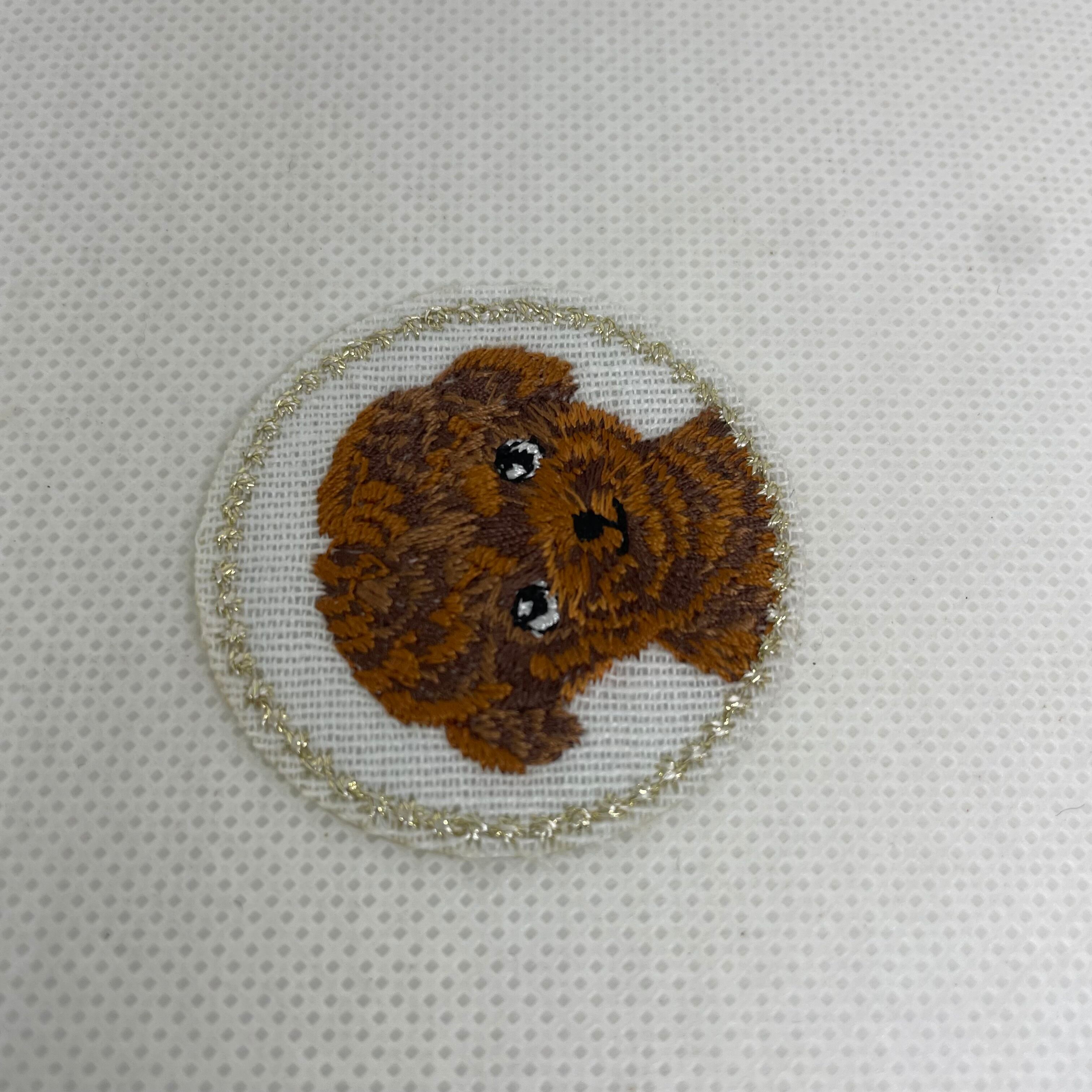 プードル 刺繍ワッペン アイロン接着 丸型 約3.8cm ブラウン