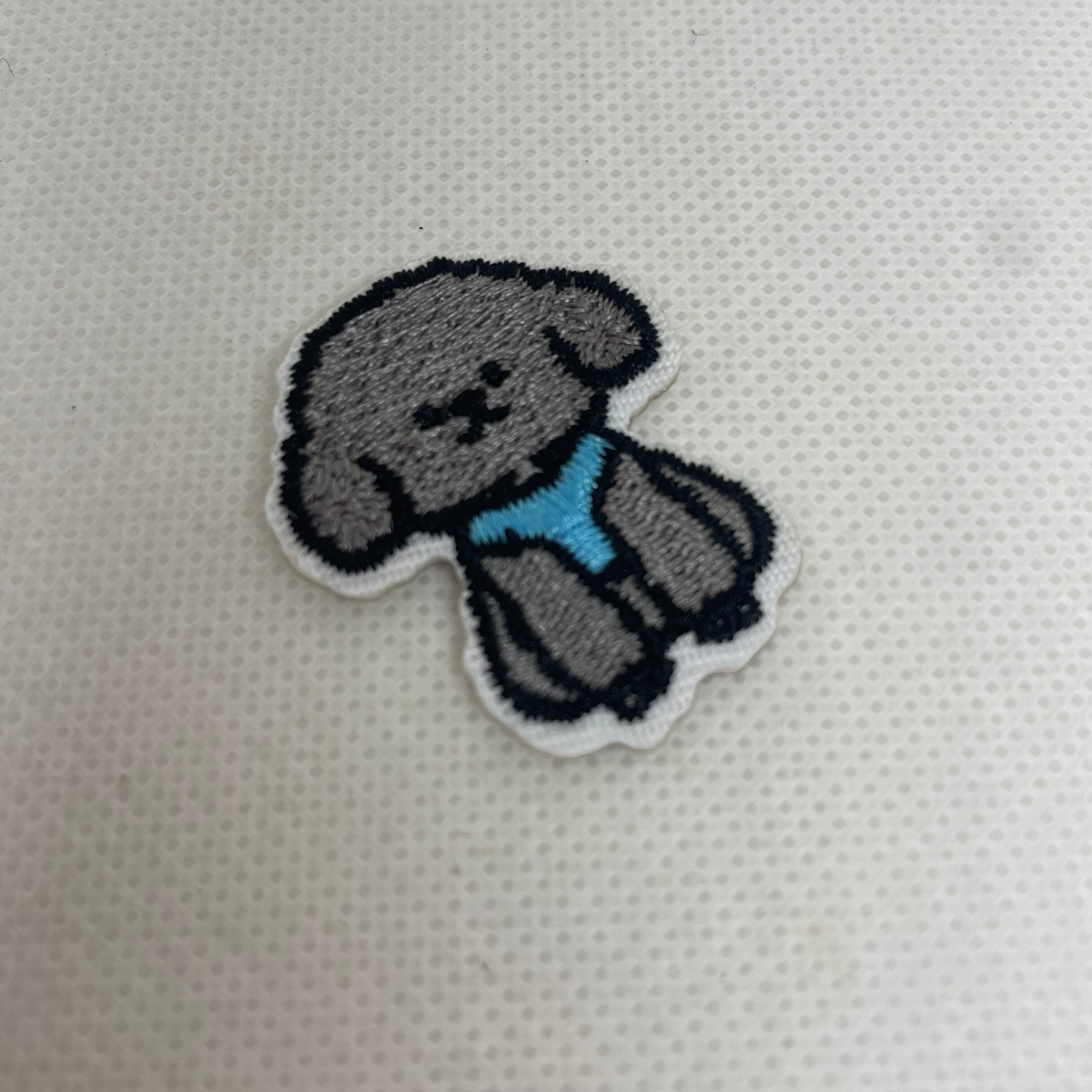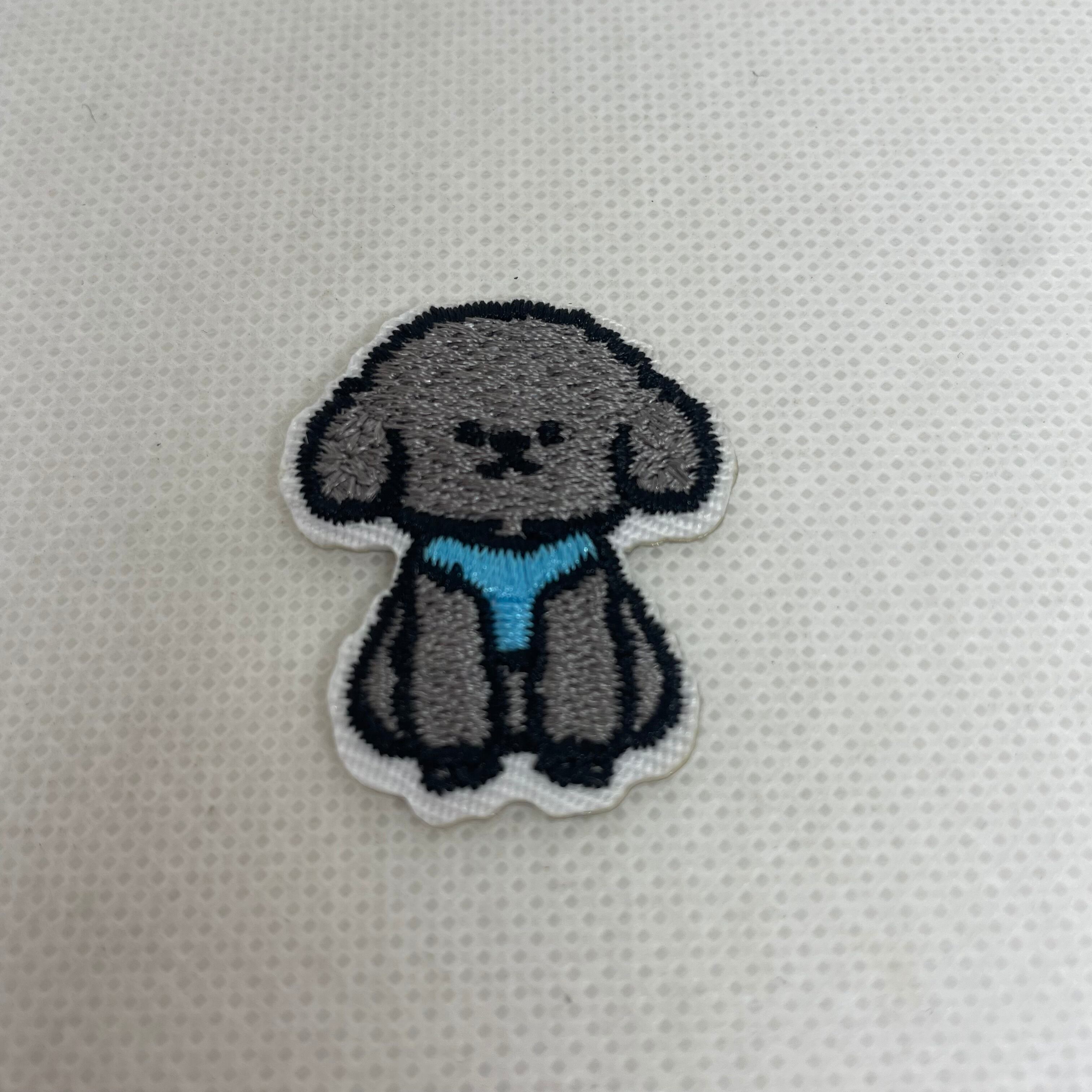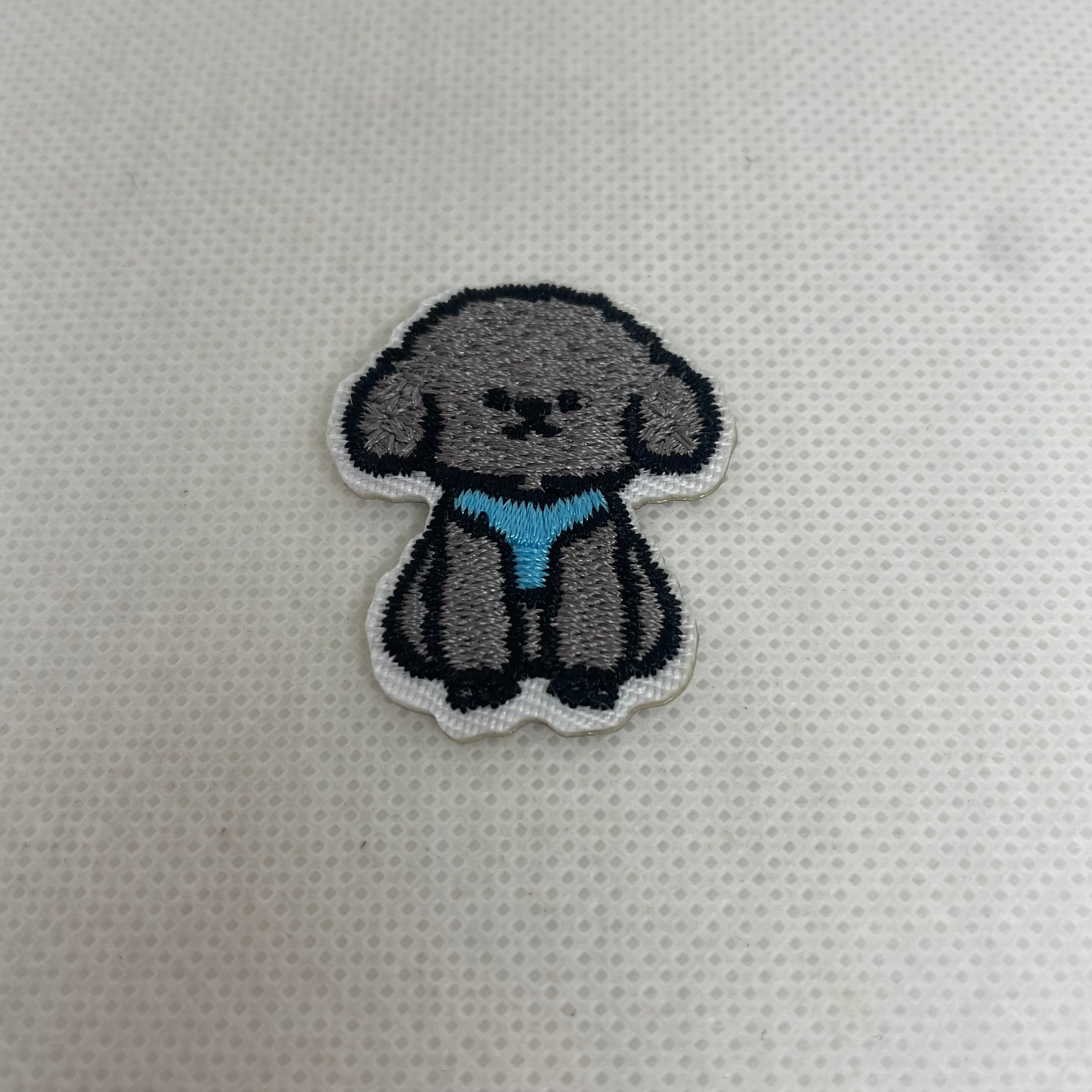 プードル 刺繍ワッペン シルバー 犬 シールタイプ ワンポイント