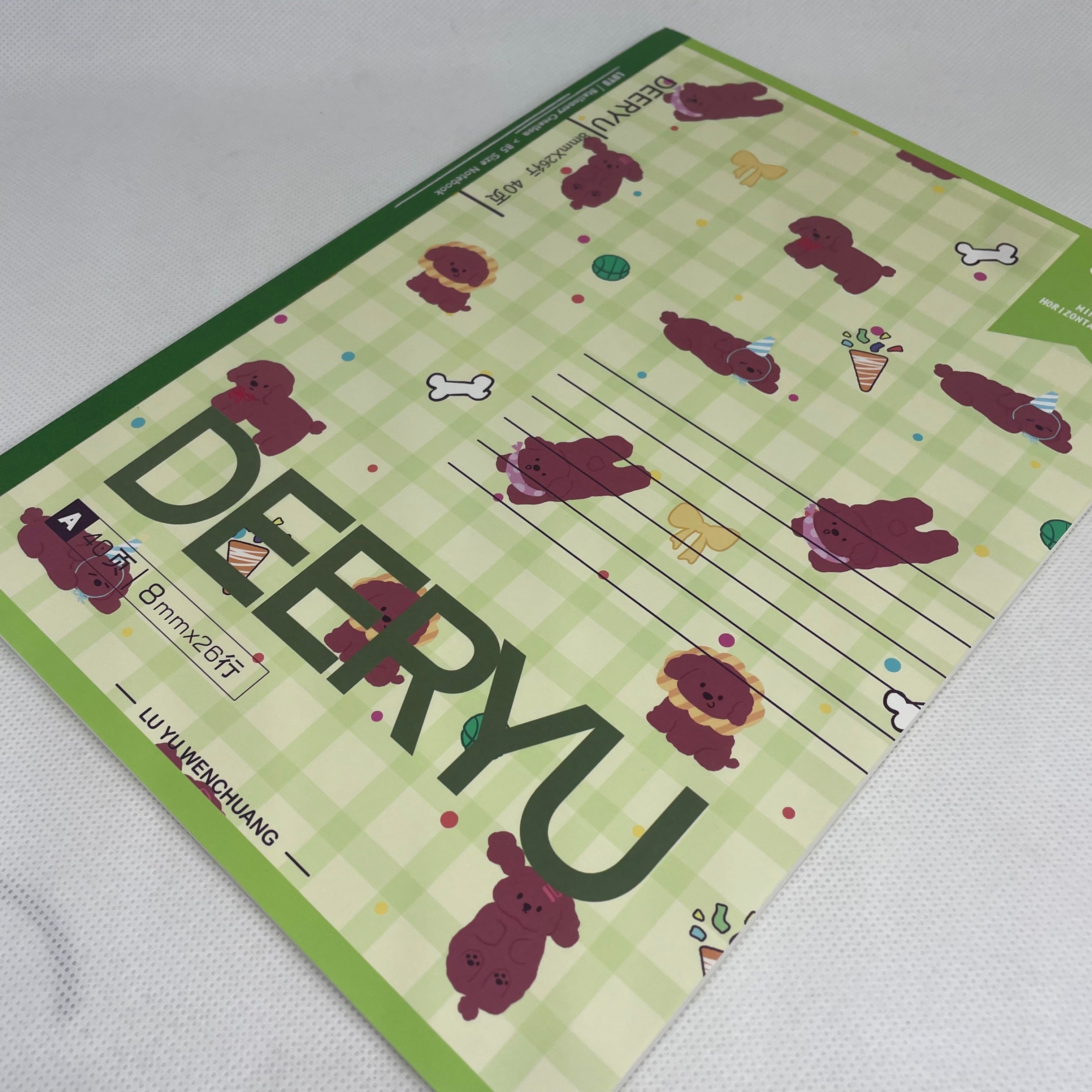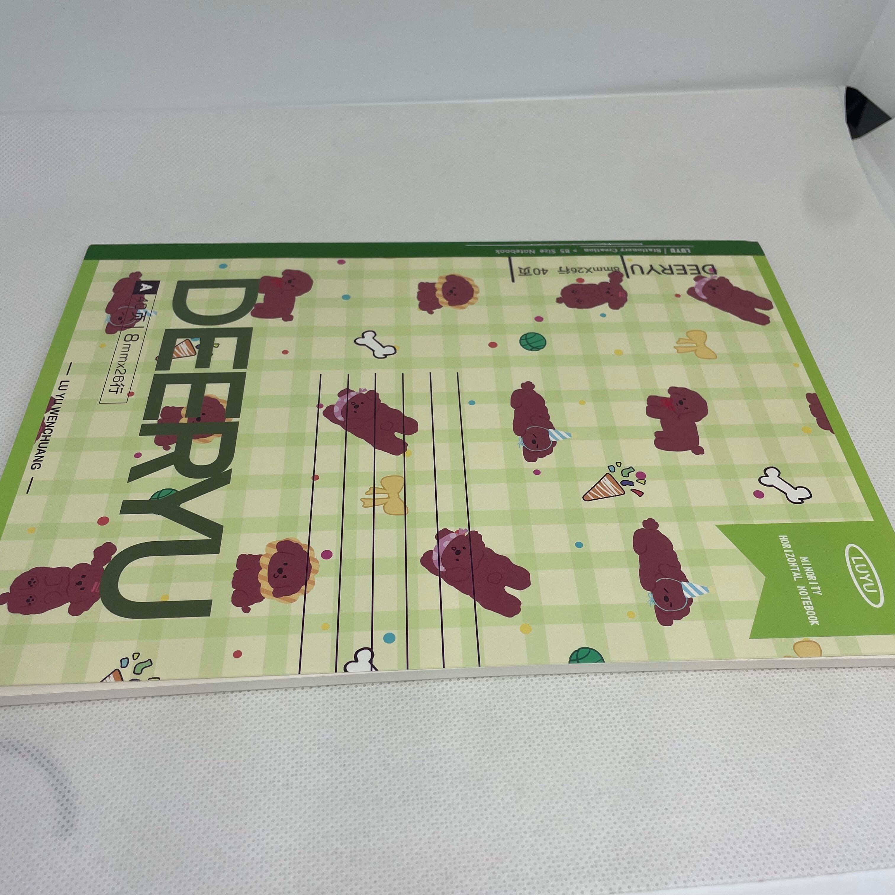 プードル ノート 40枚 チェック柄 かわいい 犬 文房具 総柄 緑