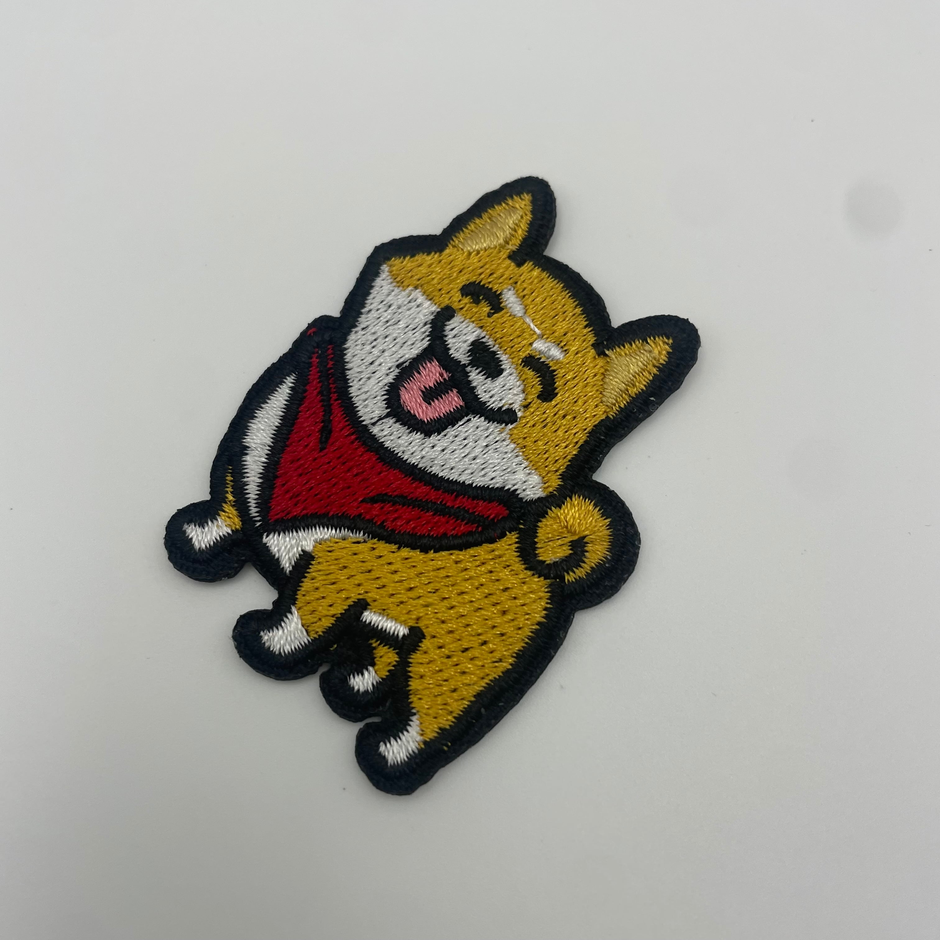 ニコニコ笑顔がとってもキュートな、柴犬の刺繍ワッペンです。