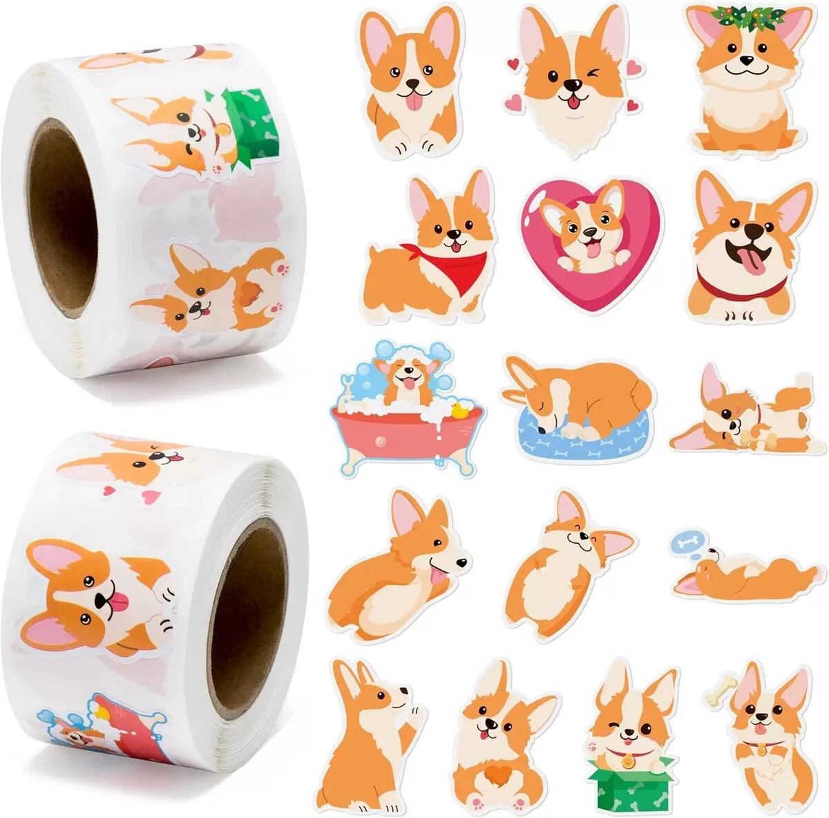 【たっぷり500枚】コーギー ロールステッカー 大容量 シール デコ かわいい
