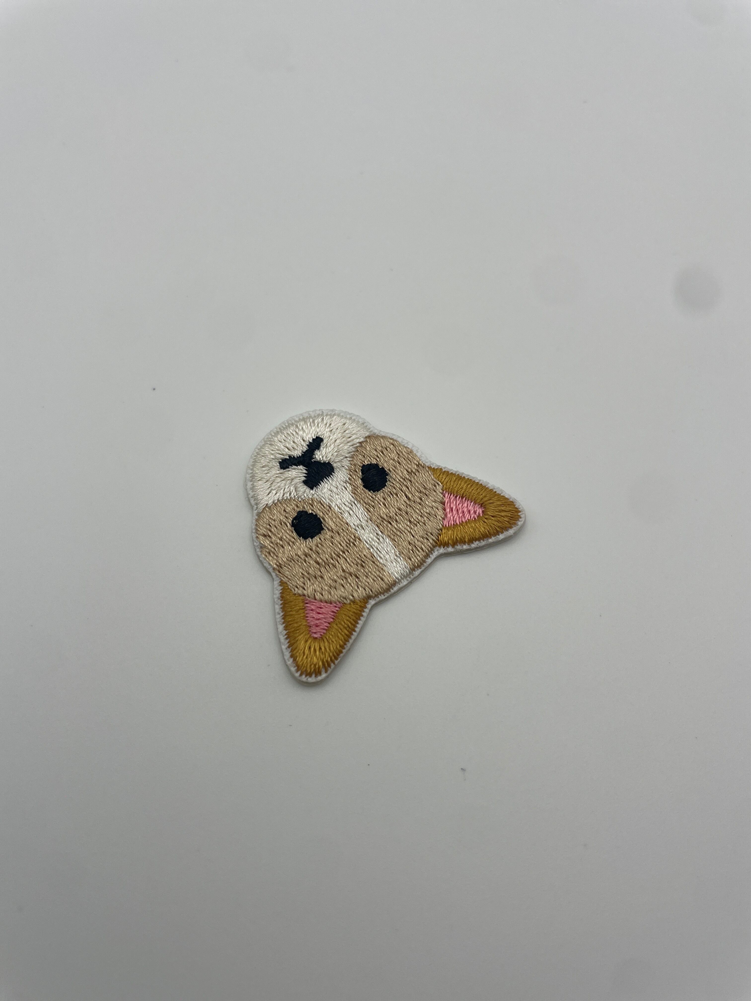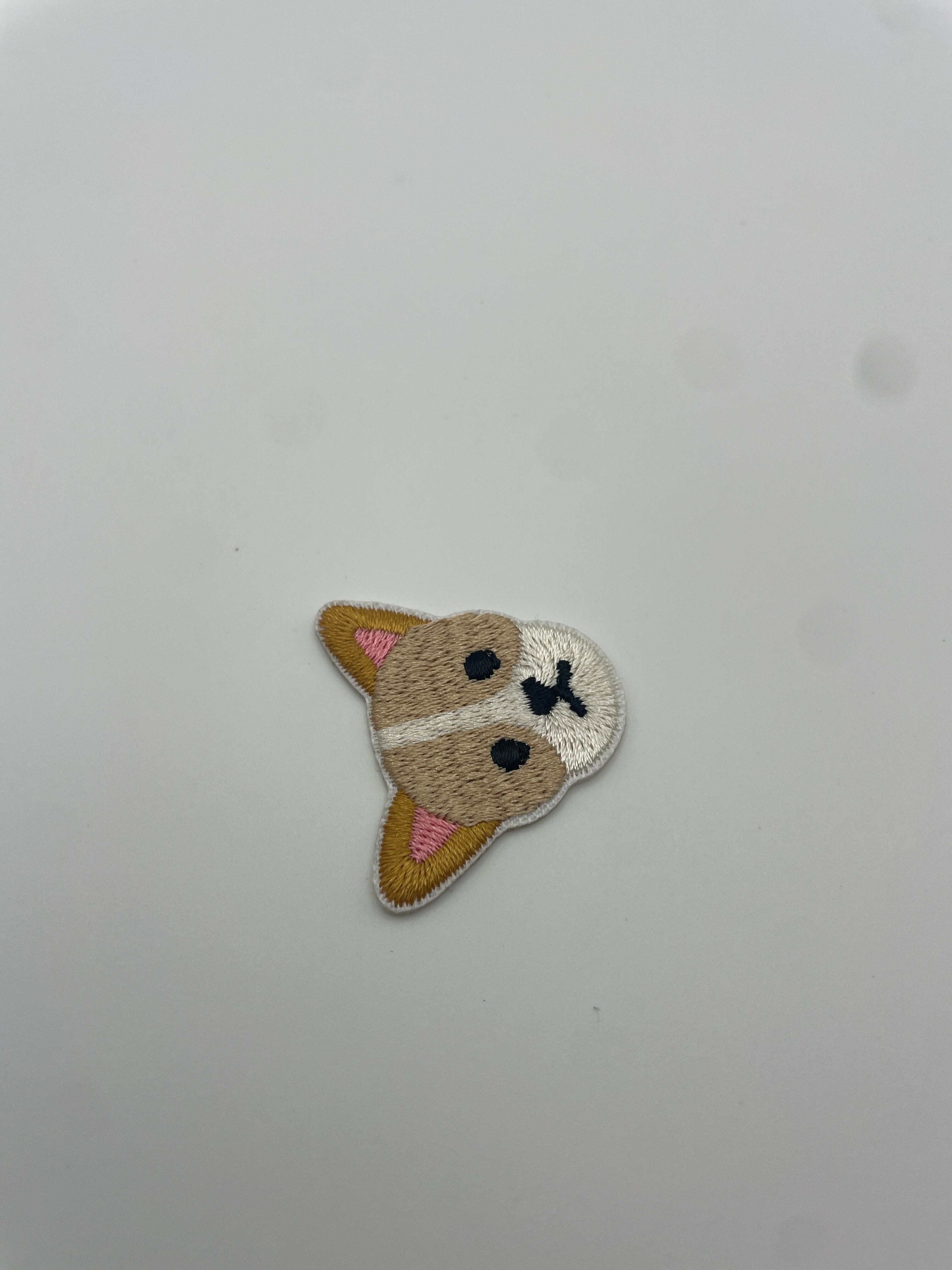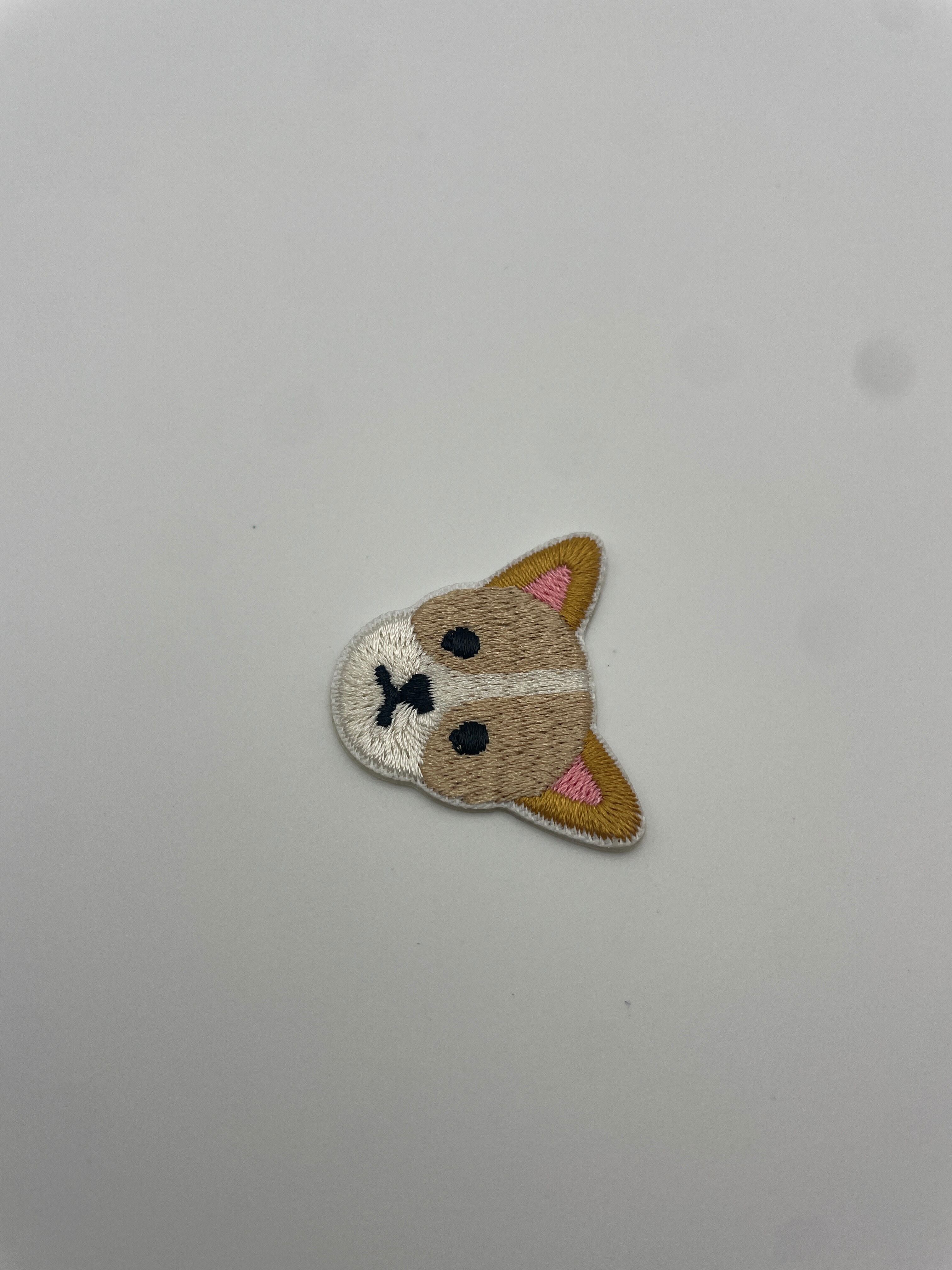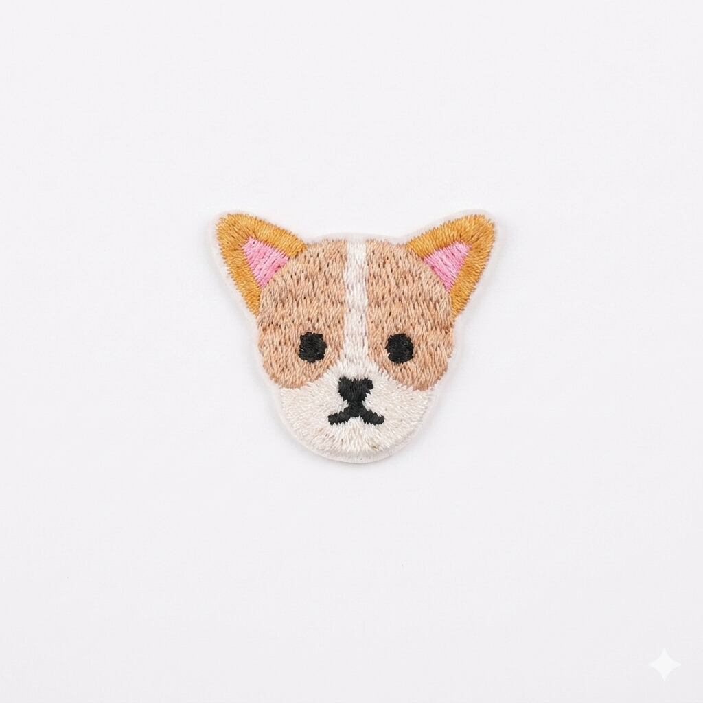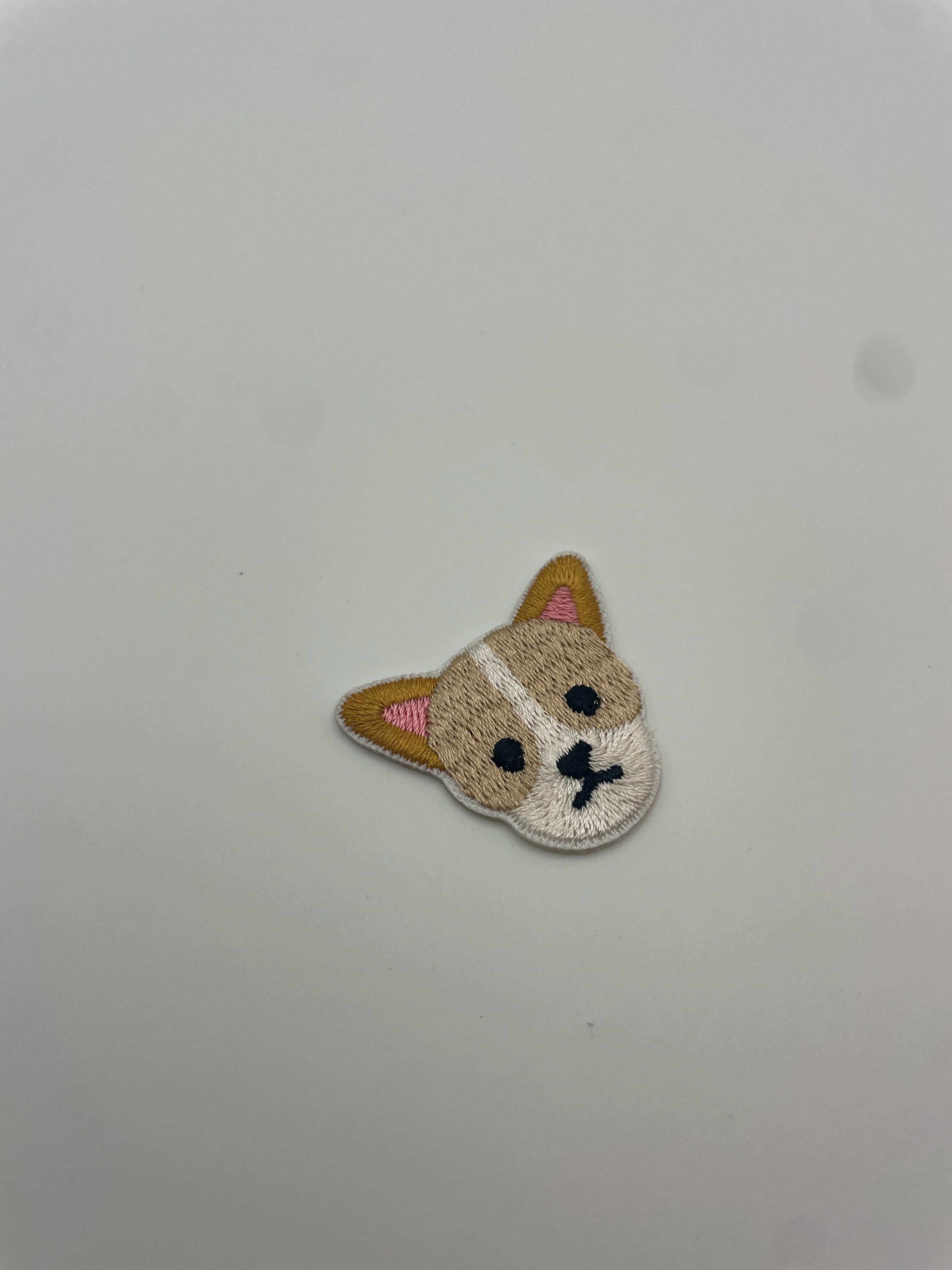 ピンと立ったお耳と、きょとんとした表情がたまらないコーギーの刺繍ワッペンです。
