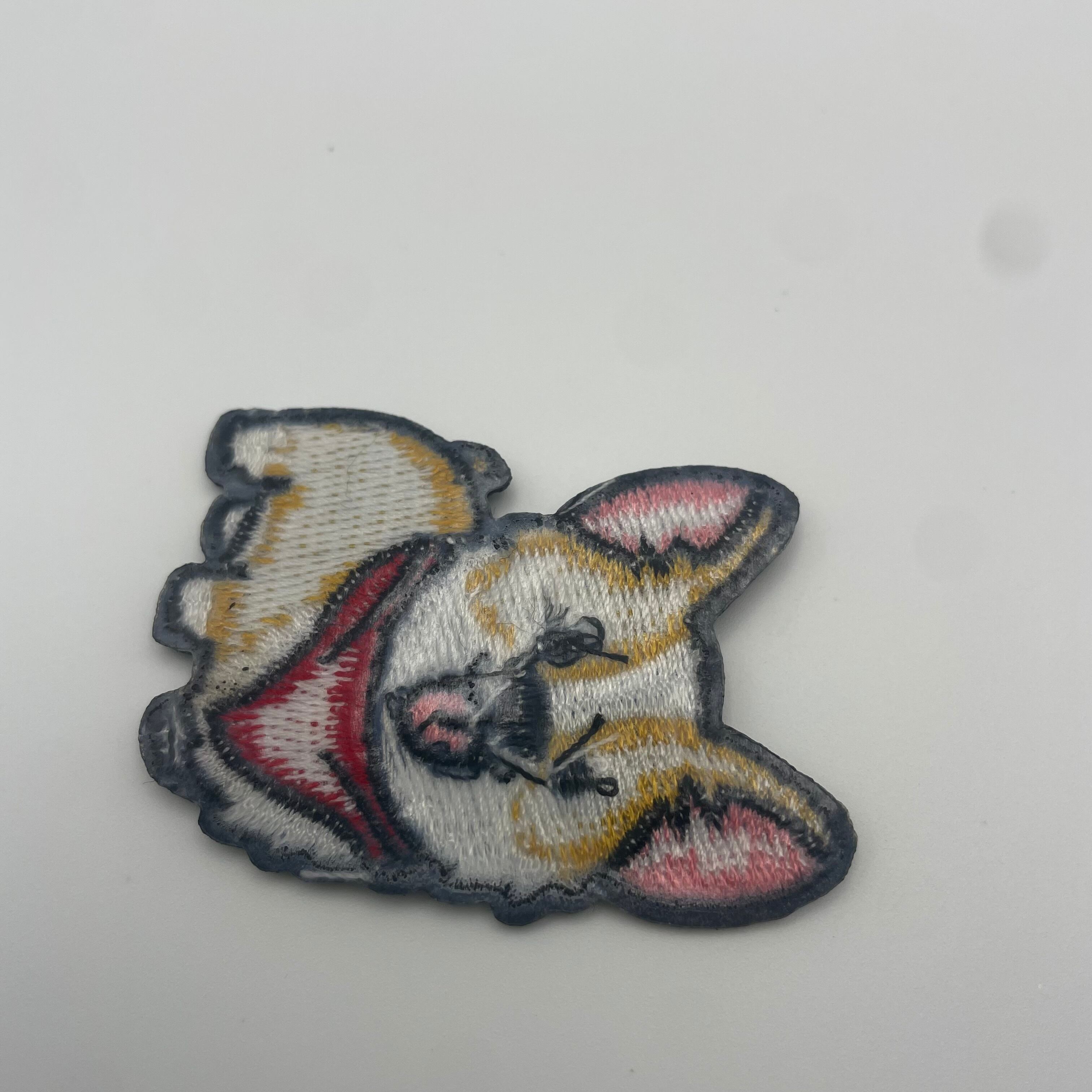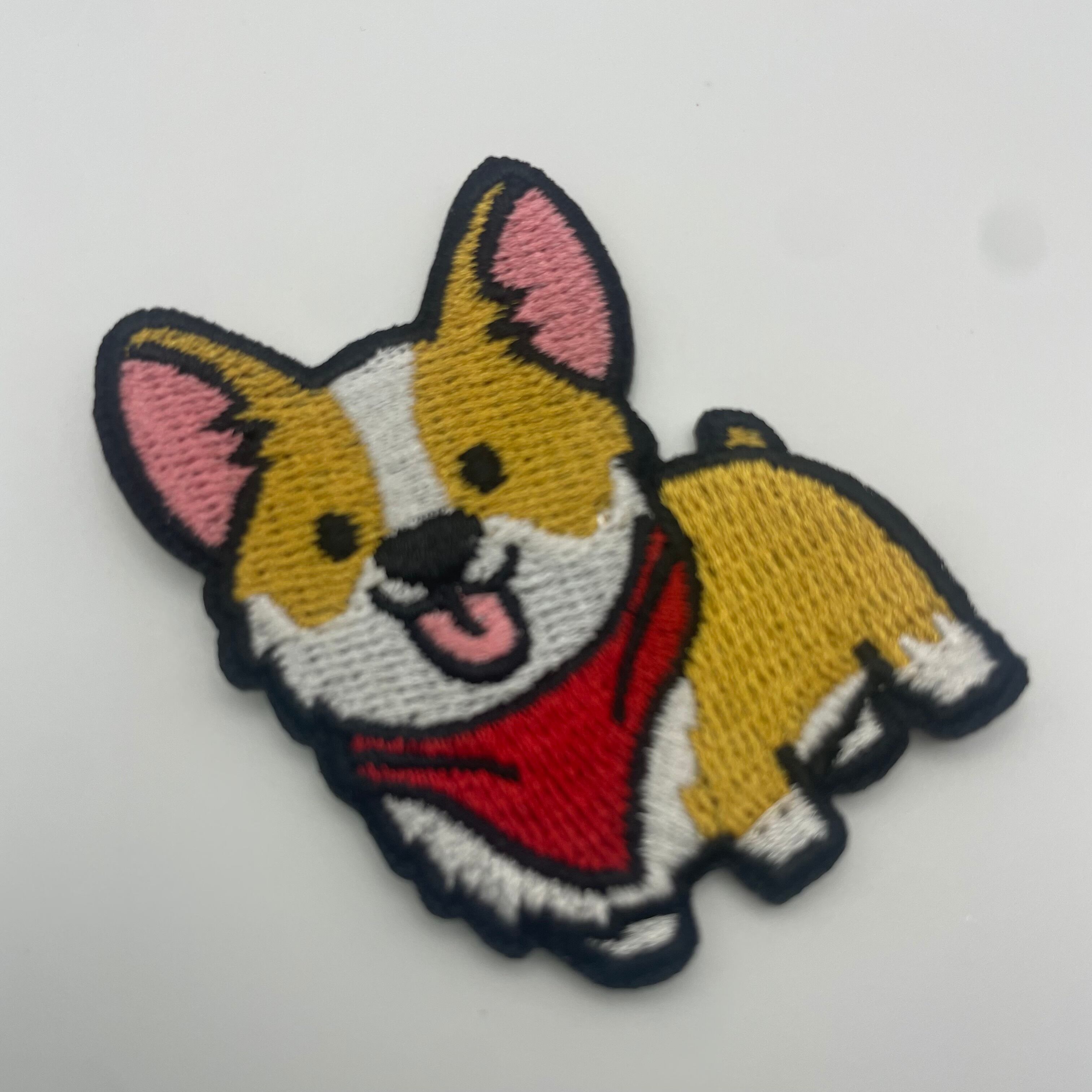 赤いバンダナを巻いた姿がとってもキュートな、コーギーの刺繍ワッペンです。