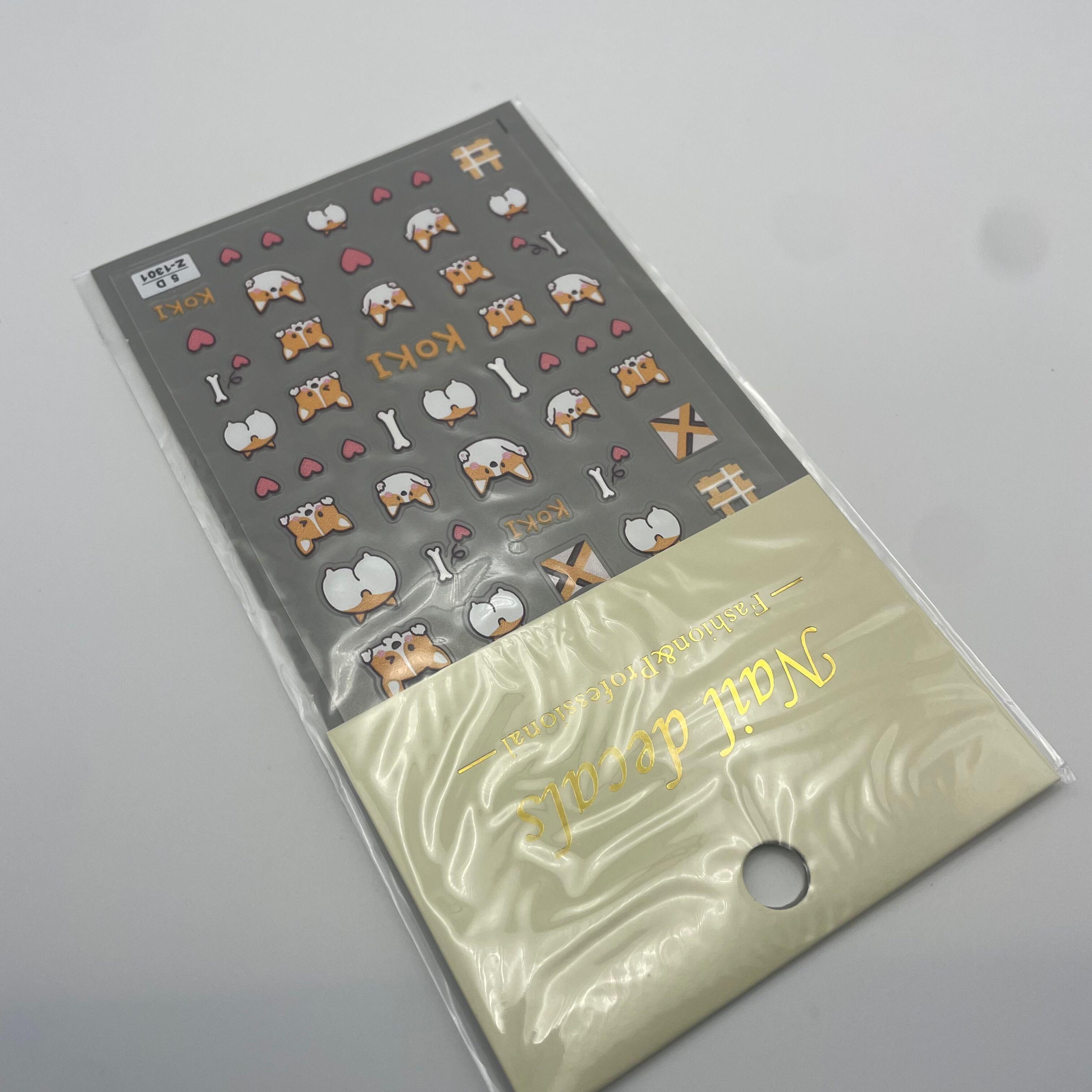 SNSでも話題!ぷっくりとした立体感が可愛い、コーギーの5Dレリーフネイルシールです。