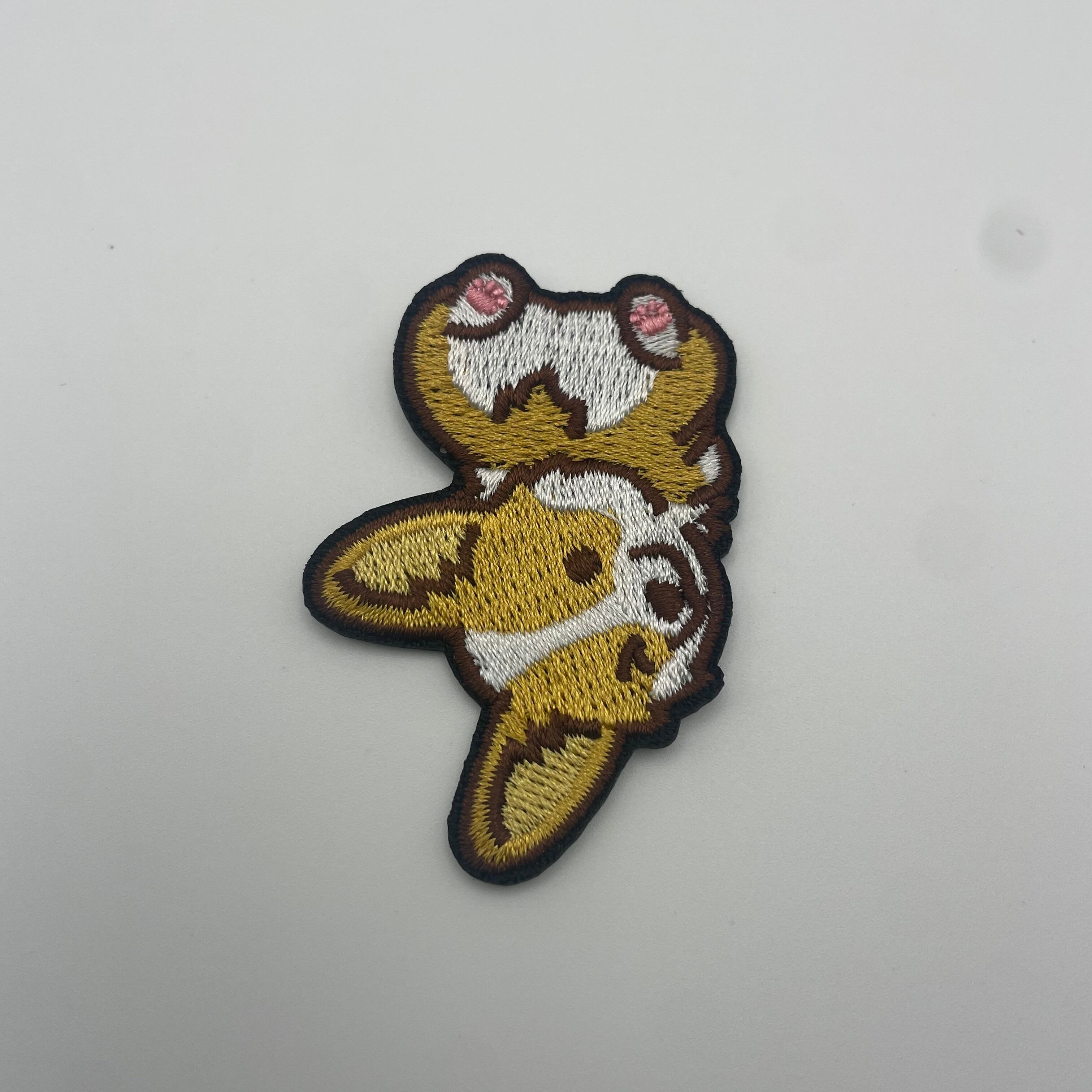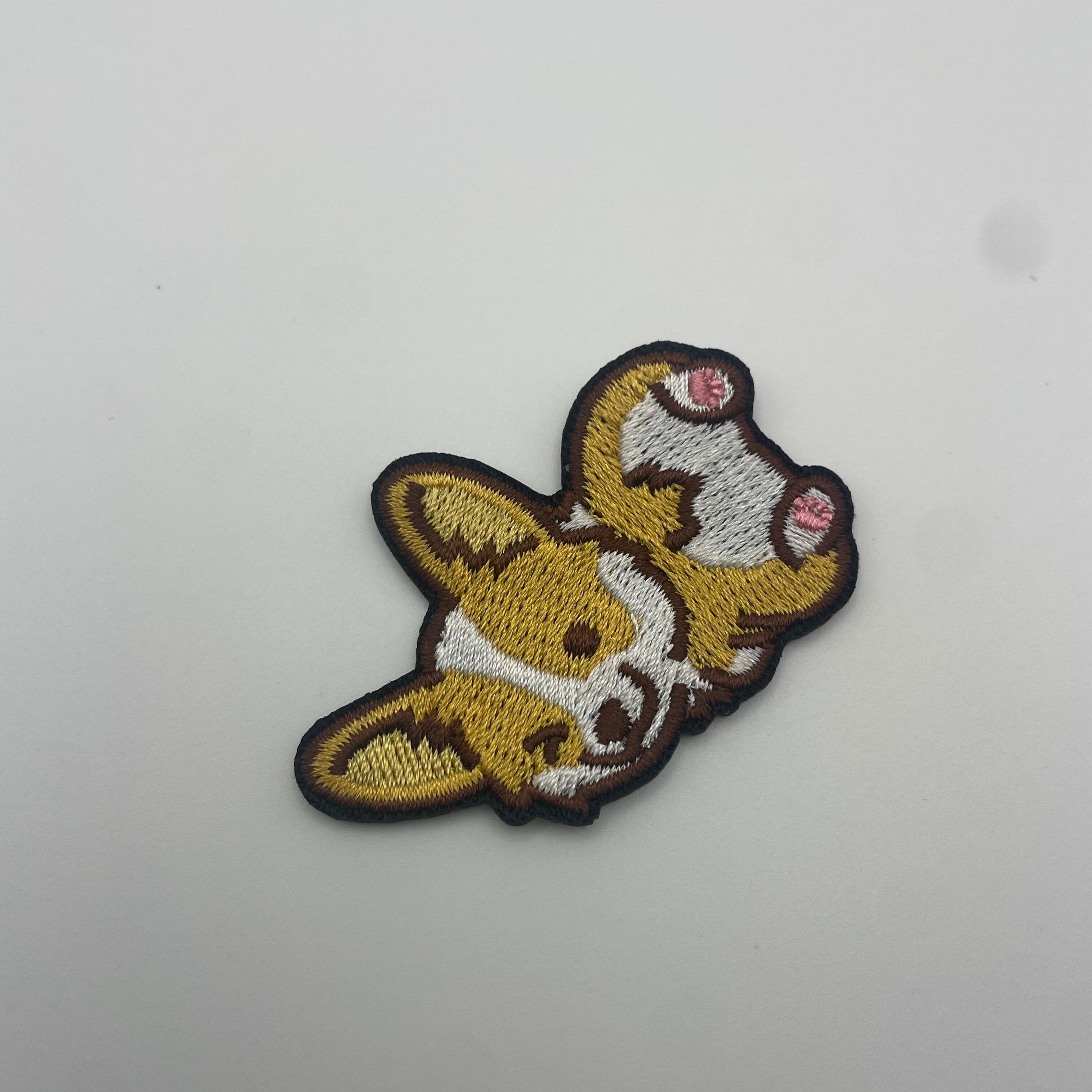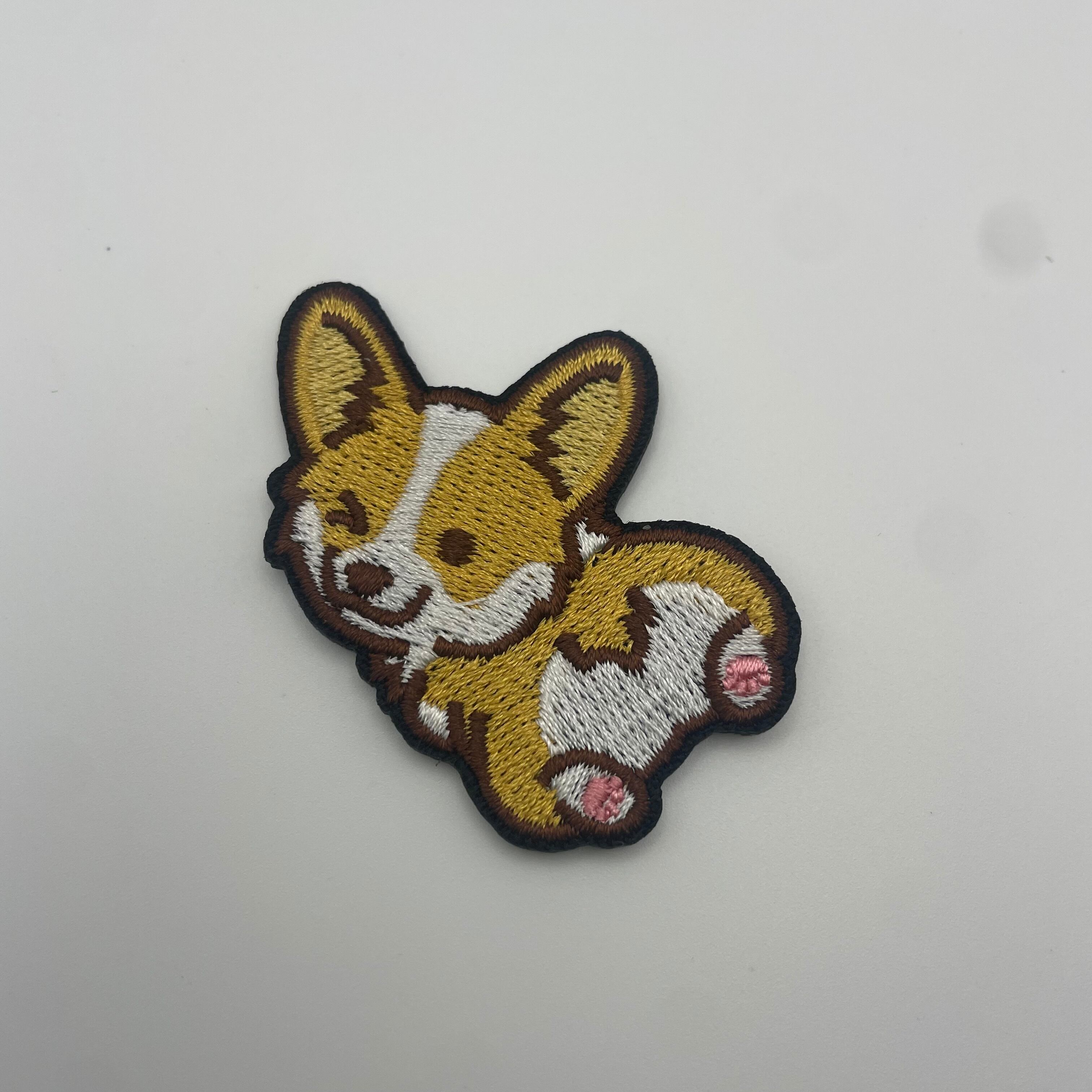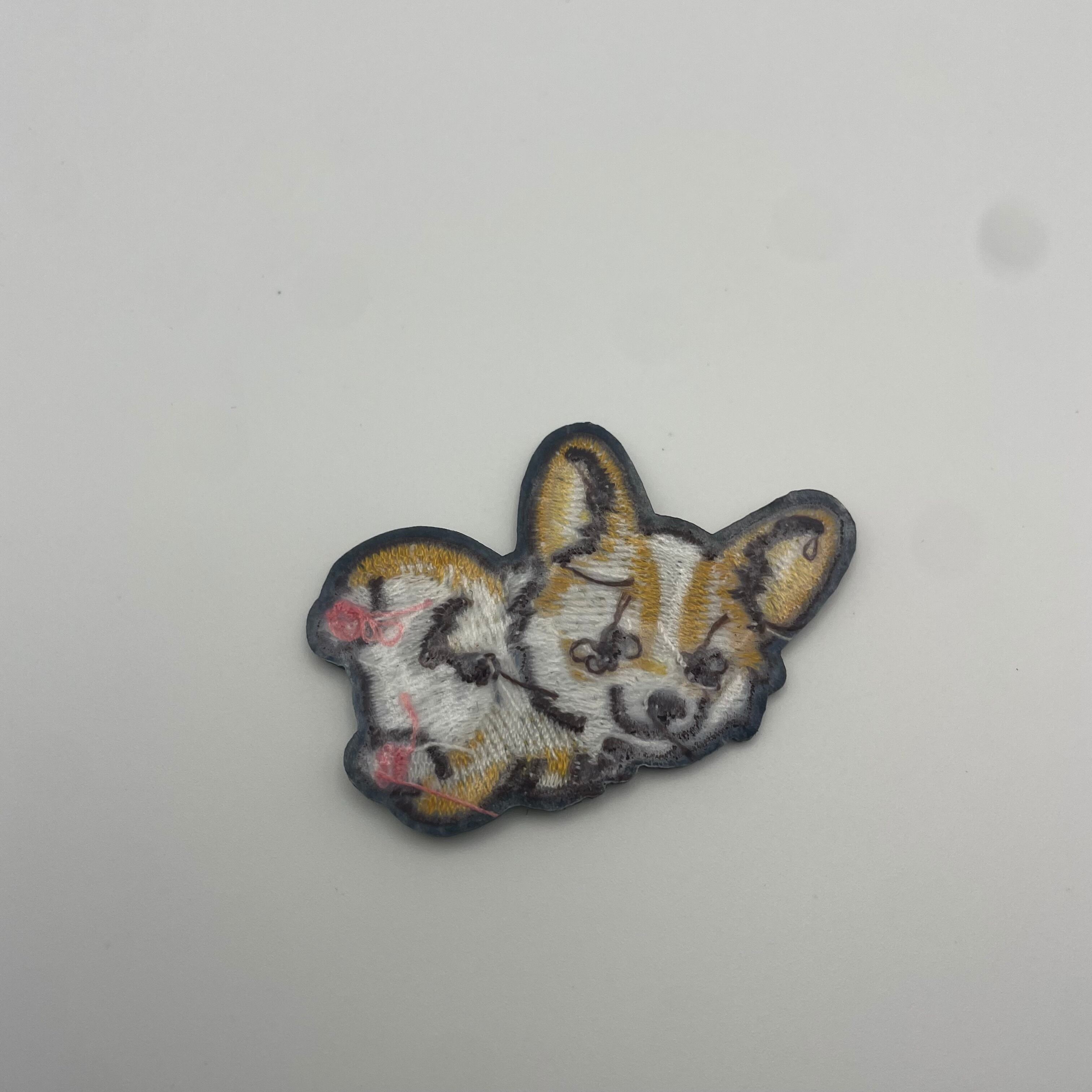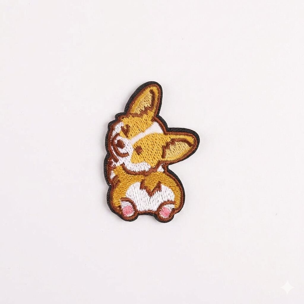 首をかしげた表情がたまらなく可愛い、コーギーの刺繍ワッペンです。