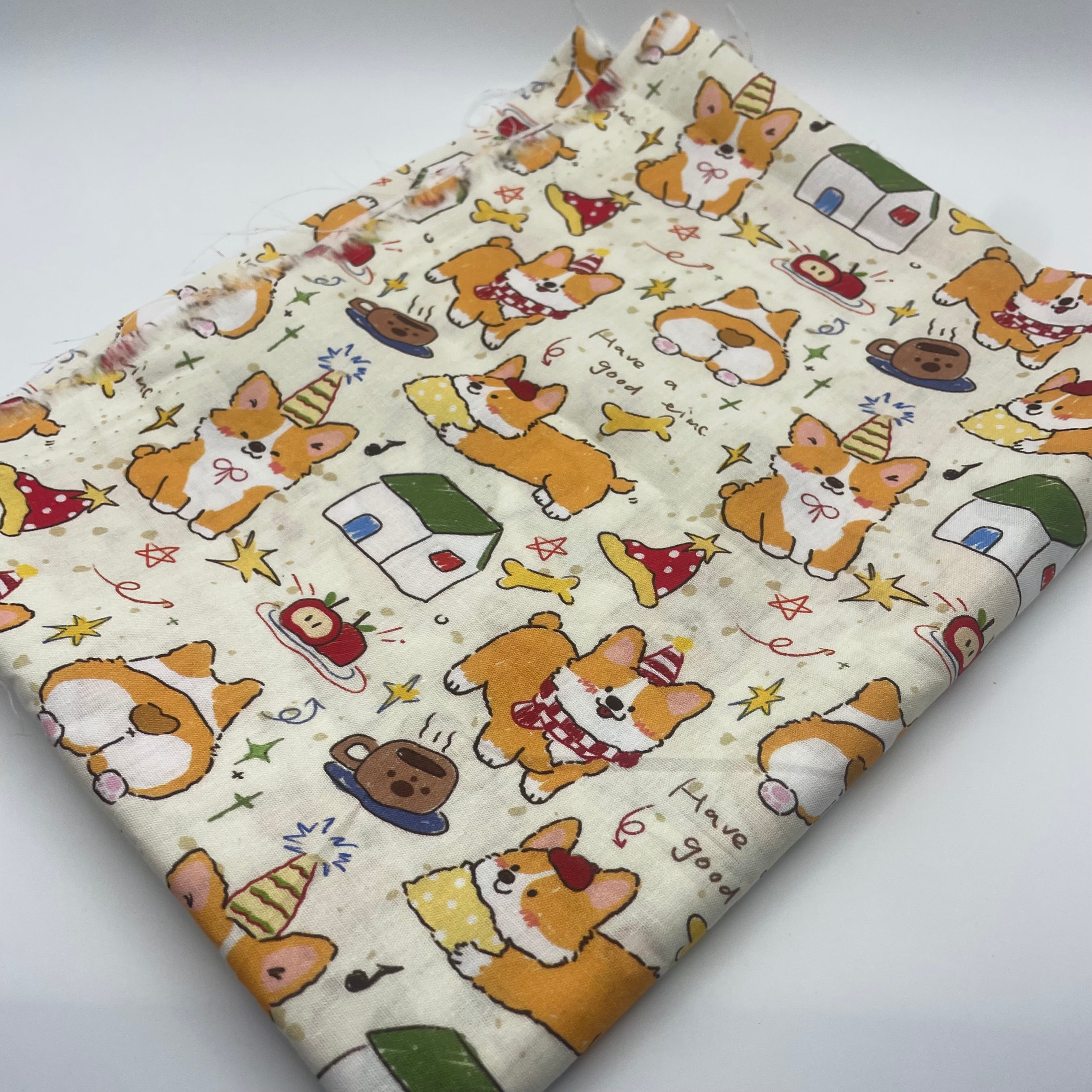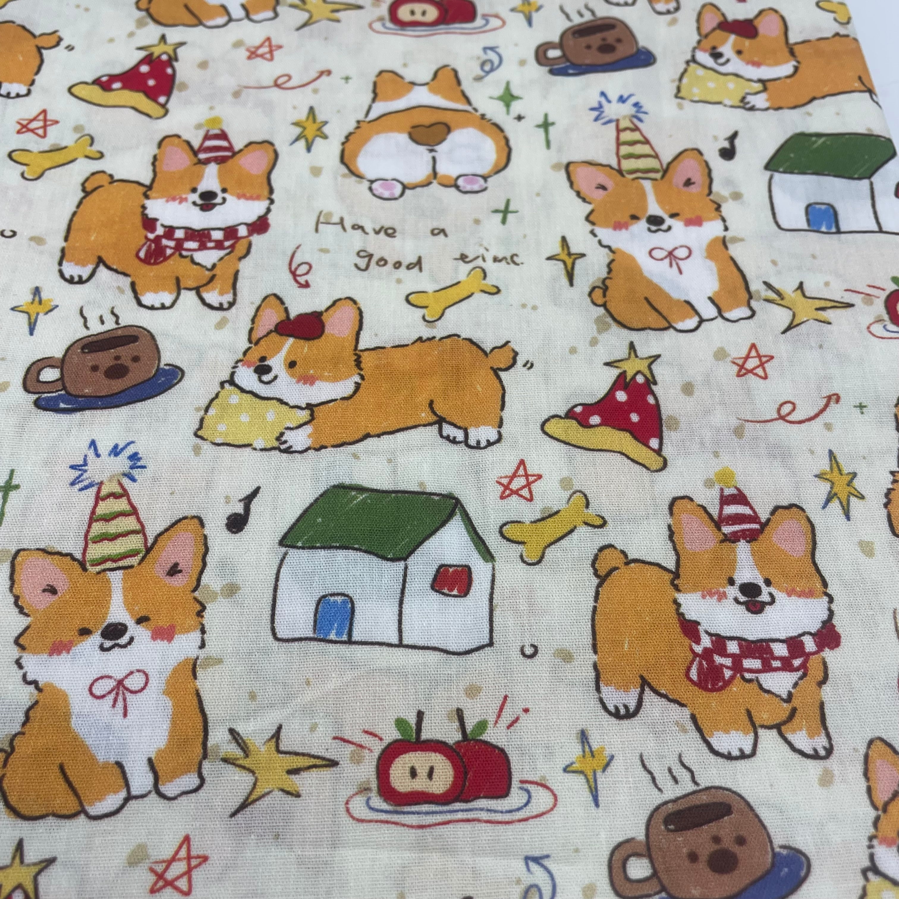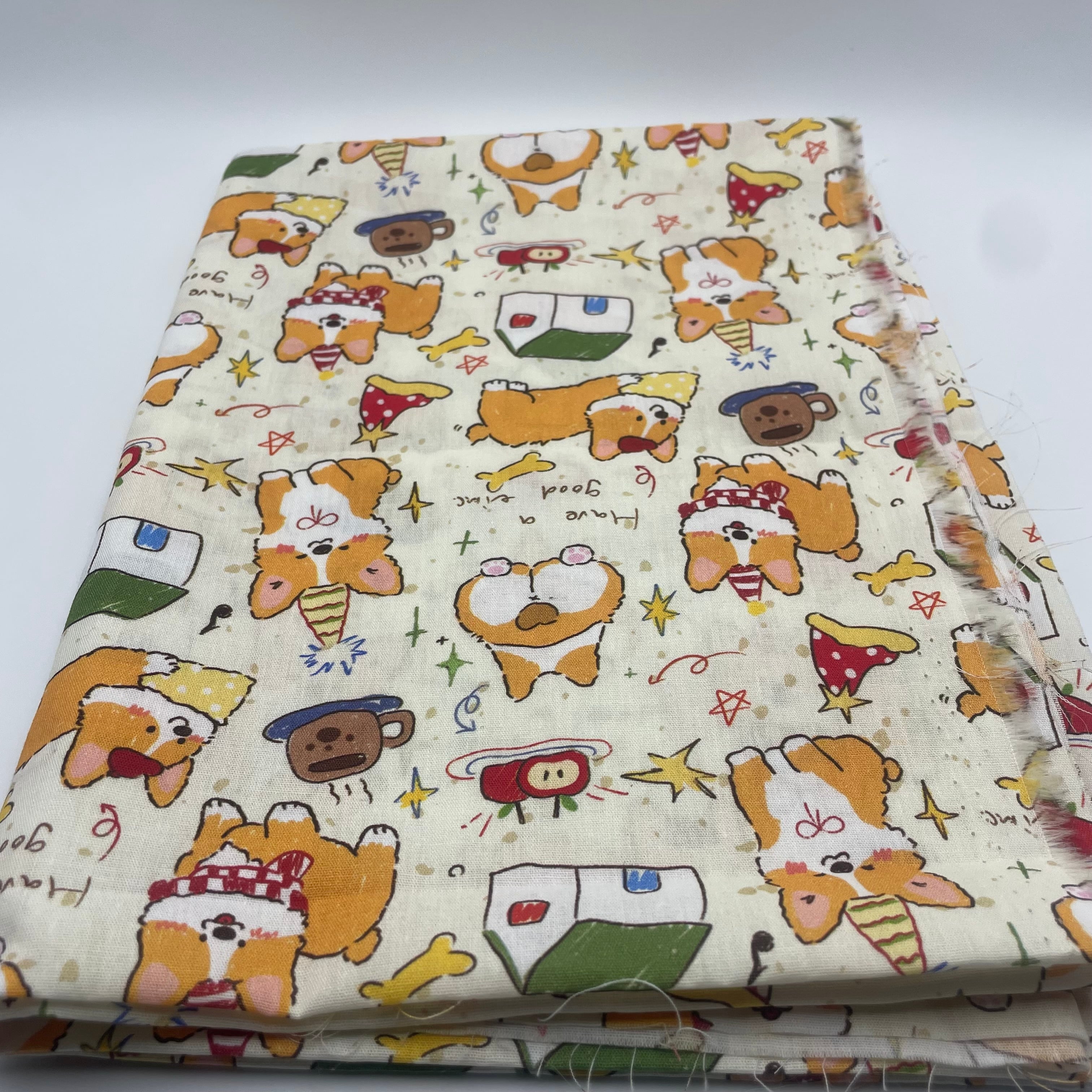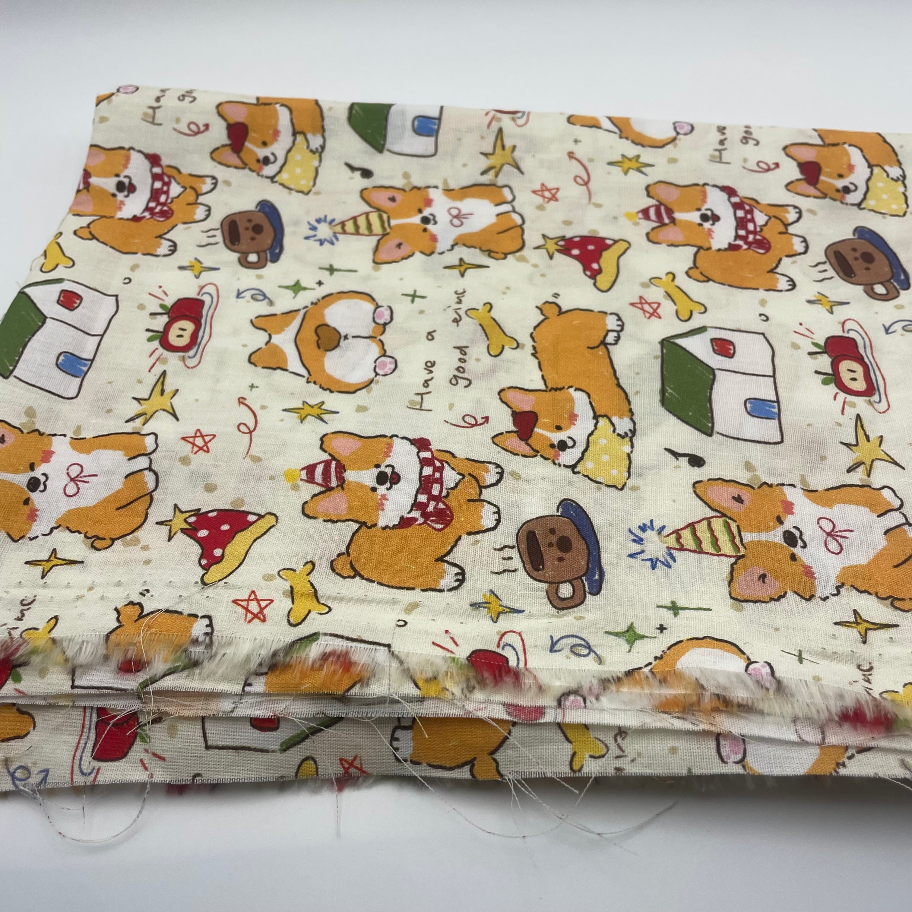 【綿100%】コーギー柄 プリント生地 布 約70×90cm ハンドメイド 犬柄