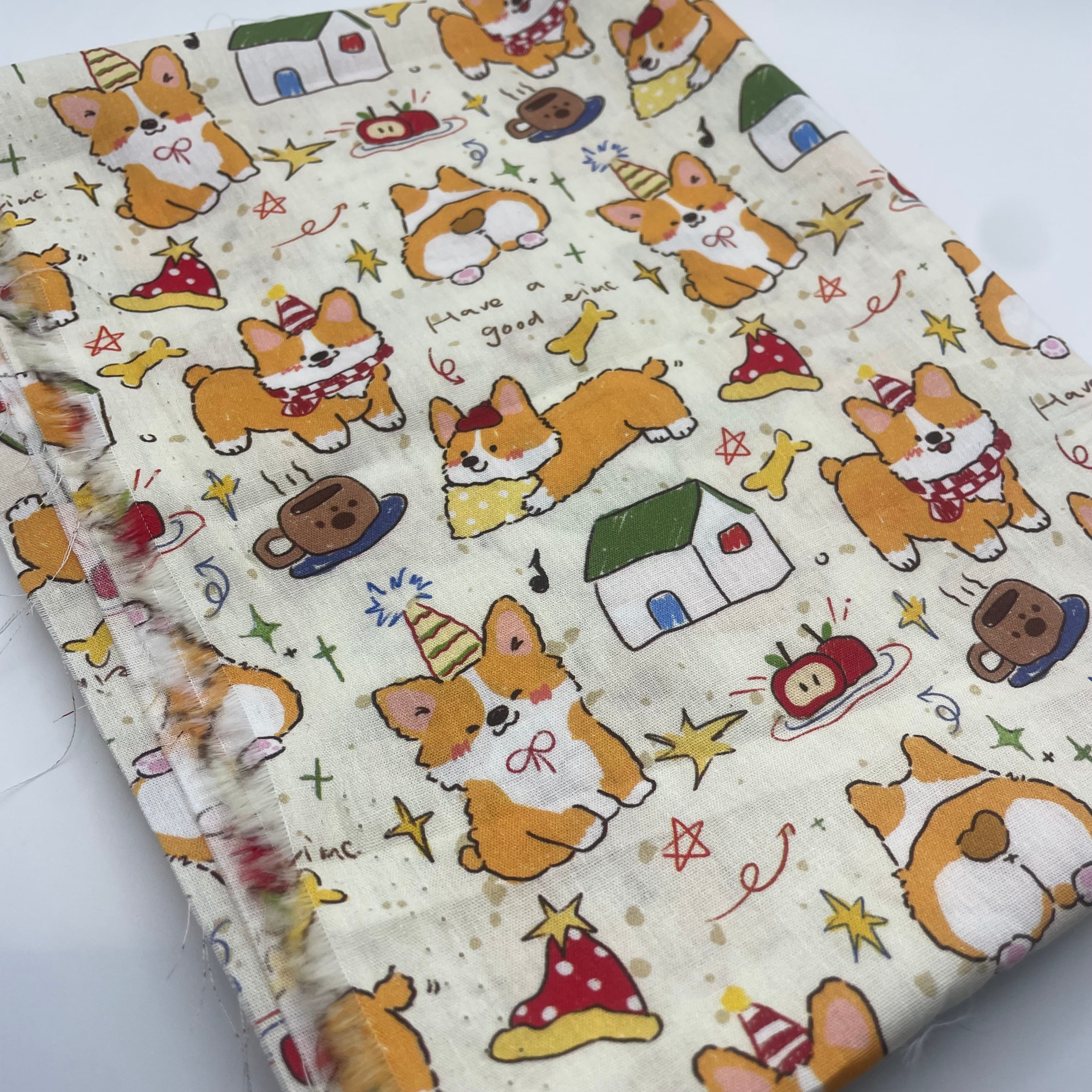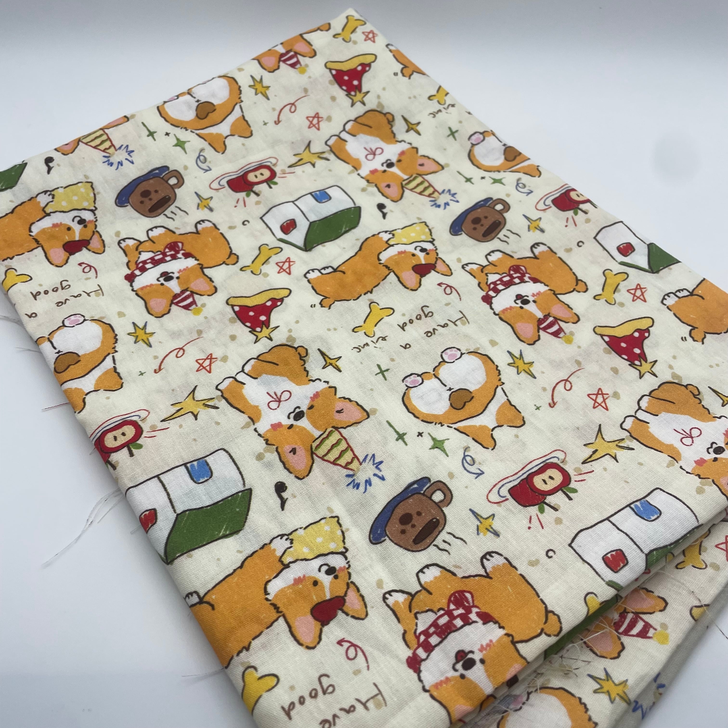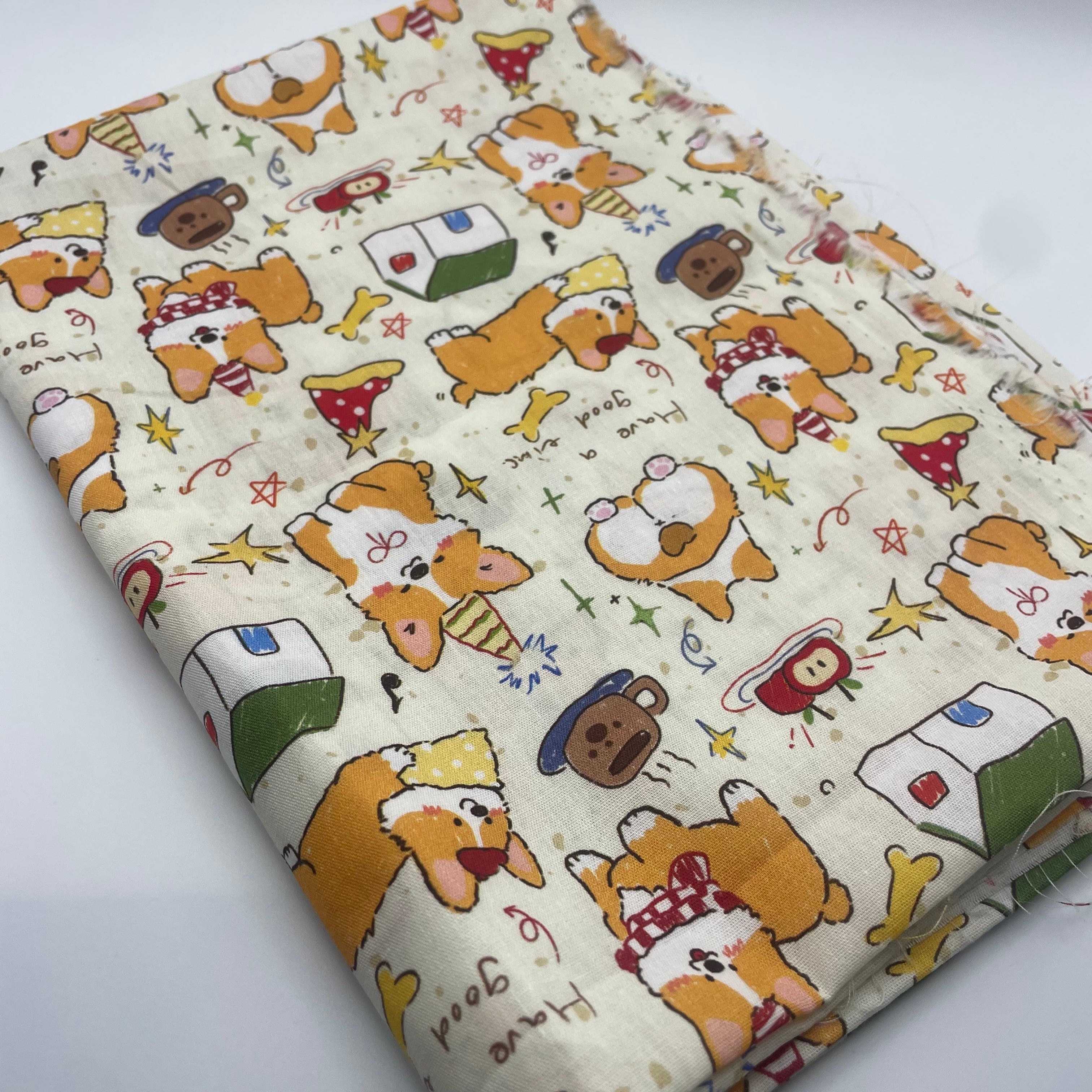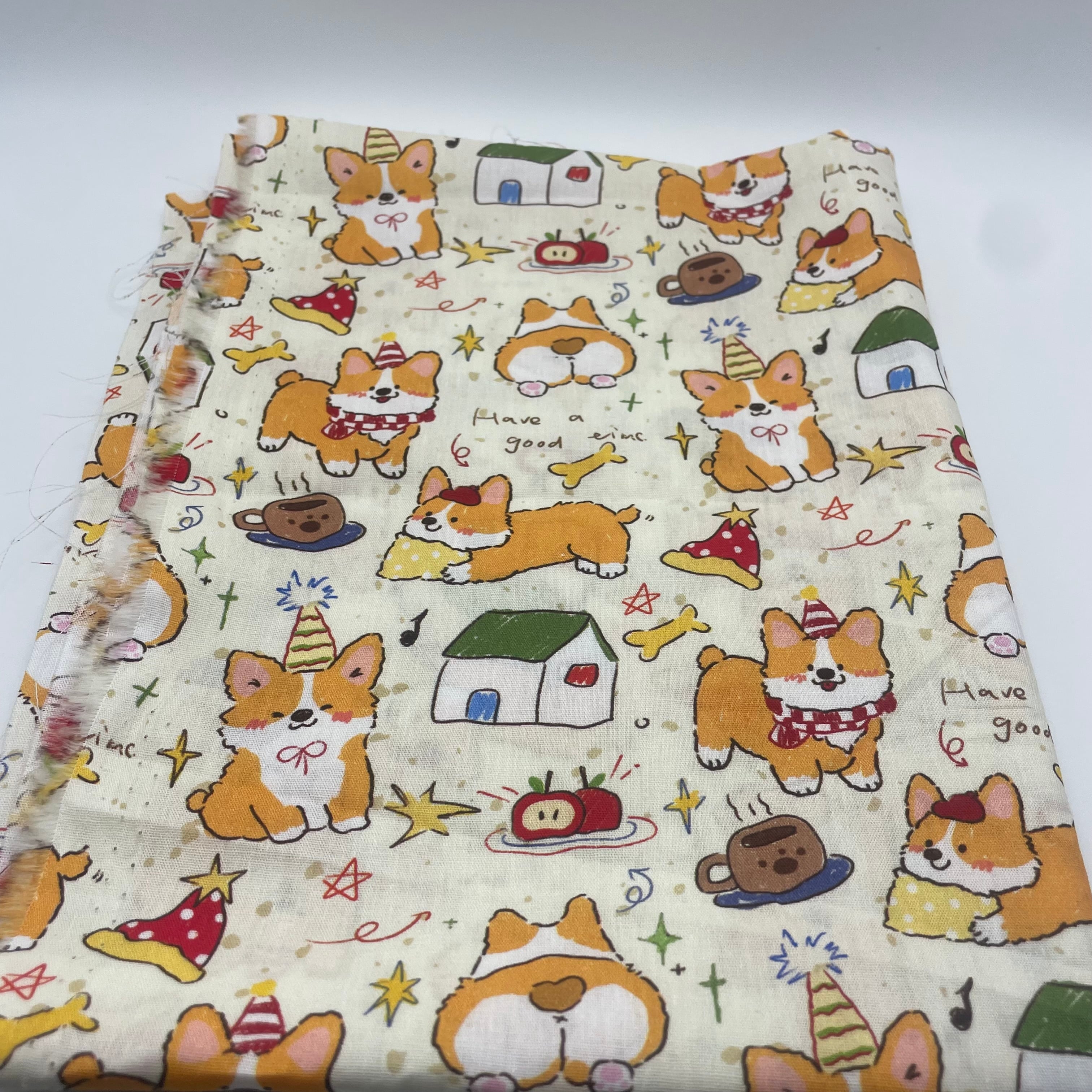 【綿100%】コーギー柄 プリント生地 布 約70×90cm ハンドメイド 犬柄