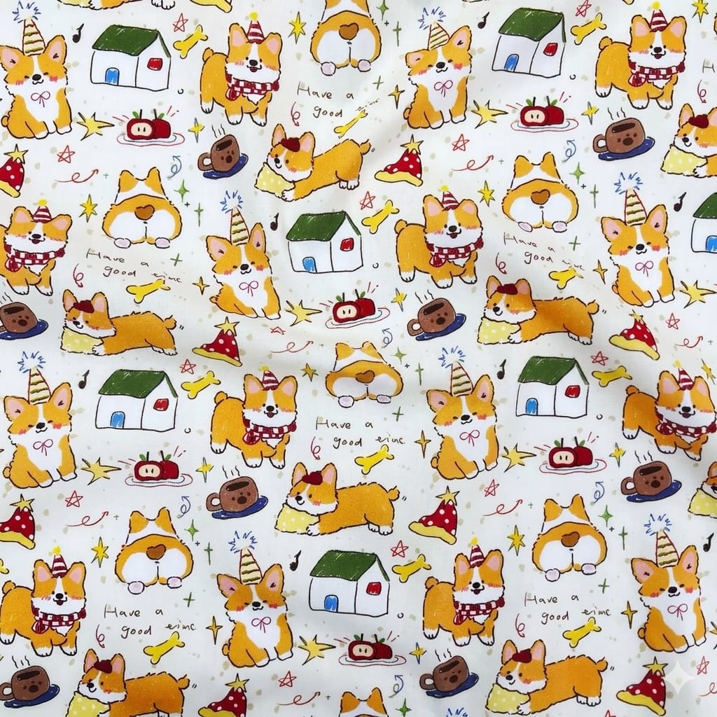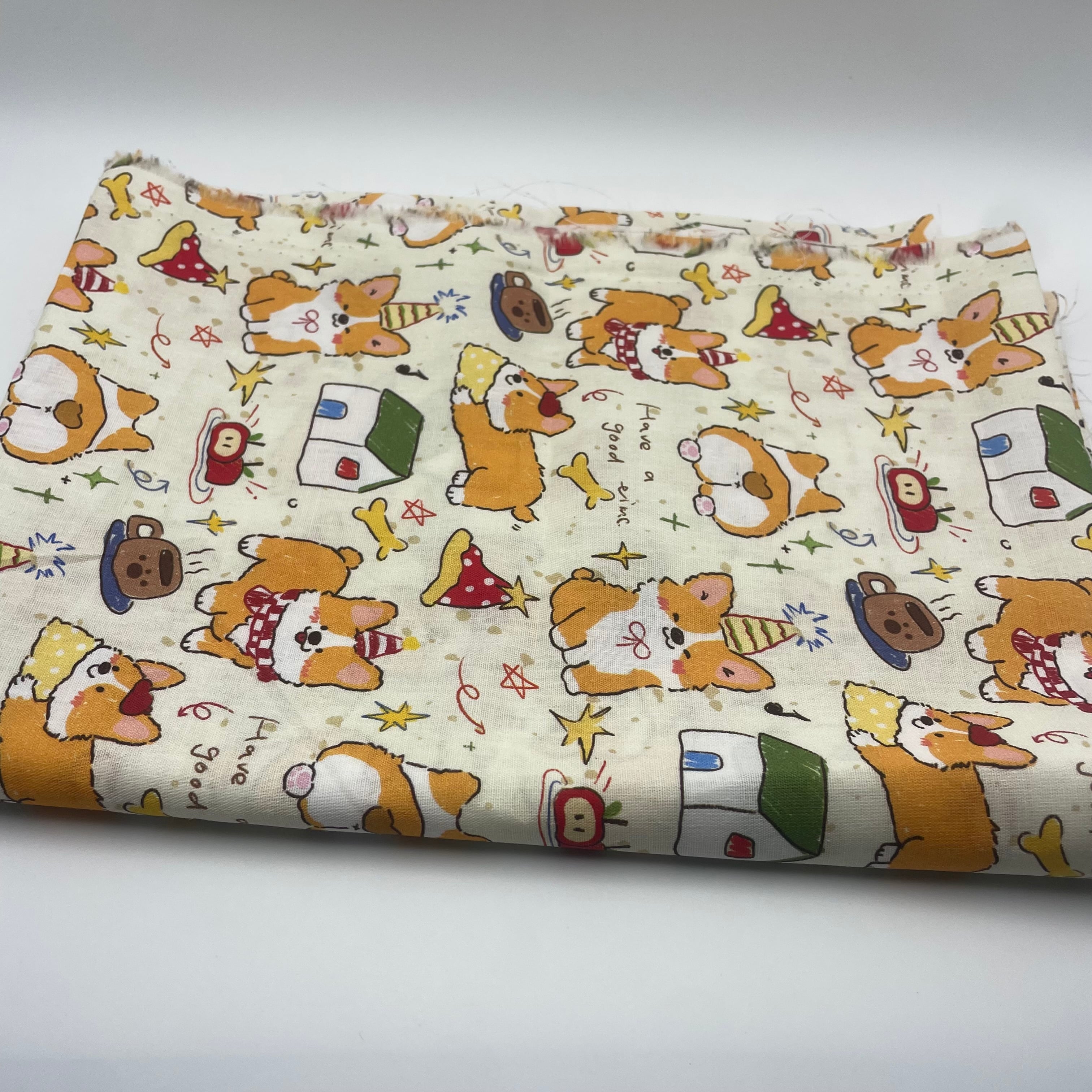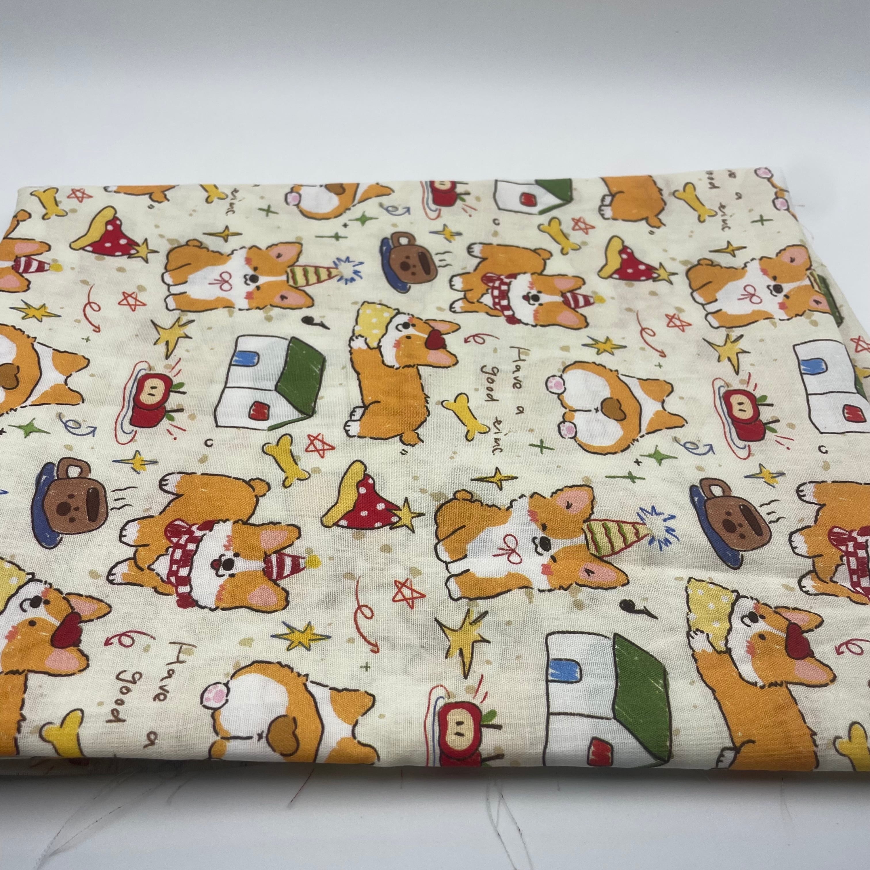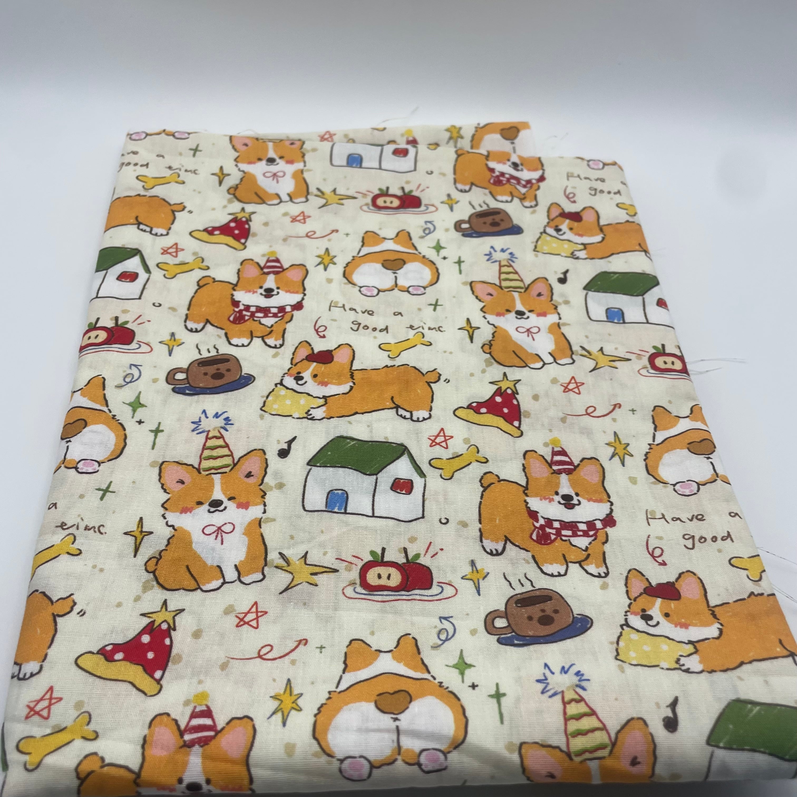 【綿100%】コーギー柄 プリント生地 布 約70×90cm ハンドメイド 犬柄