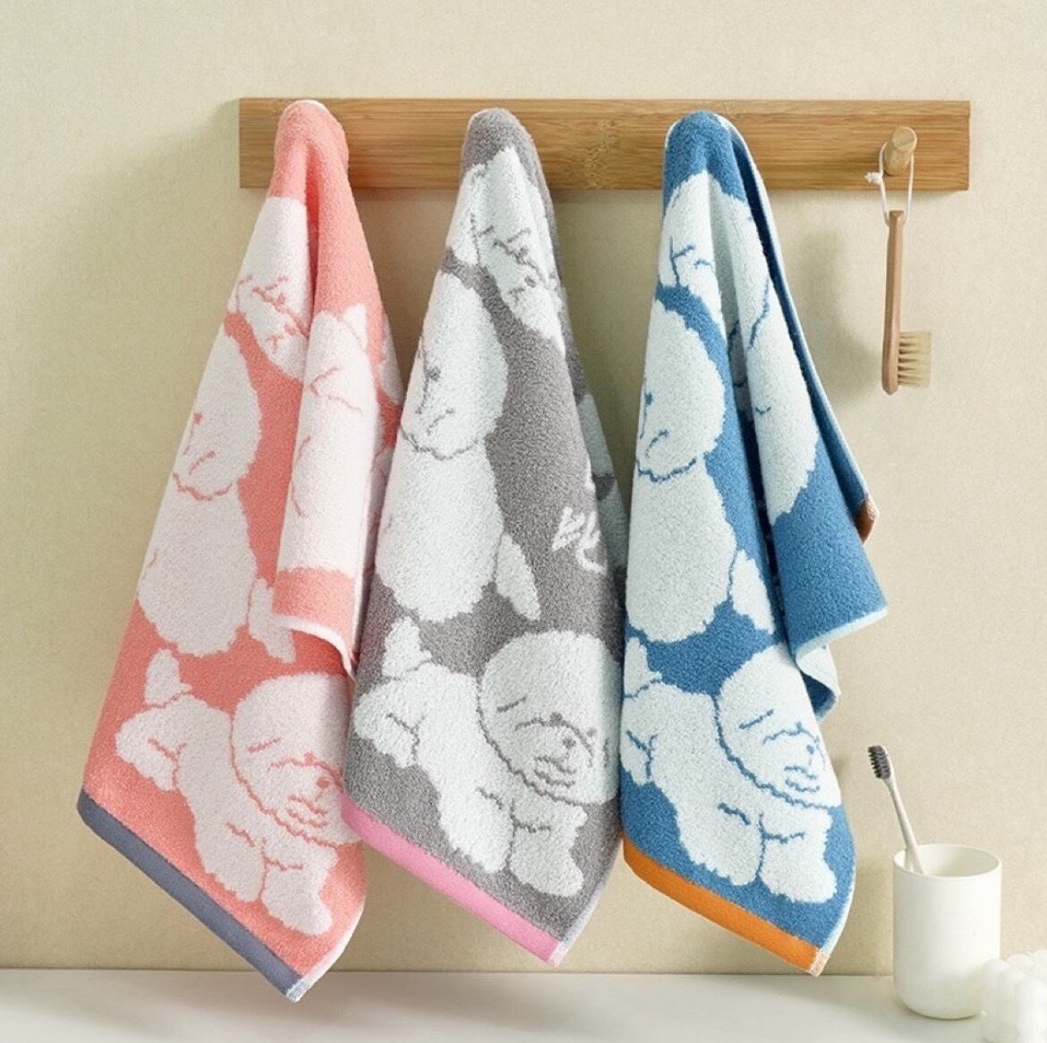 いろんな表情のビションを見つめると、ついついニッコリしてしまう可愛いタオルです。